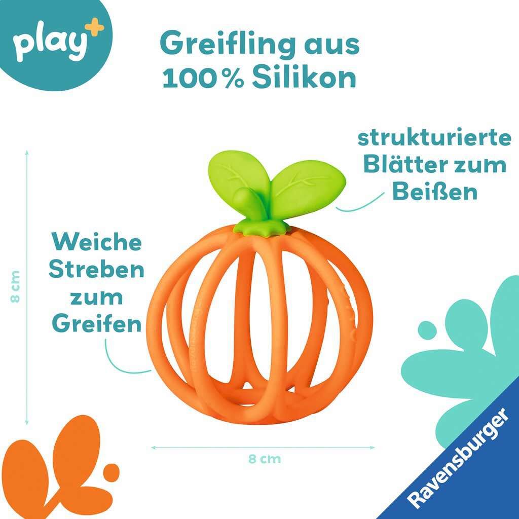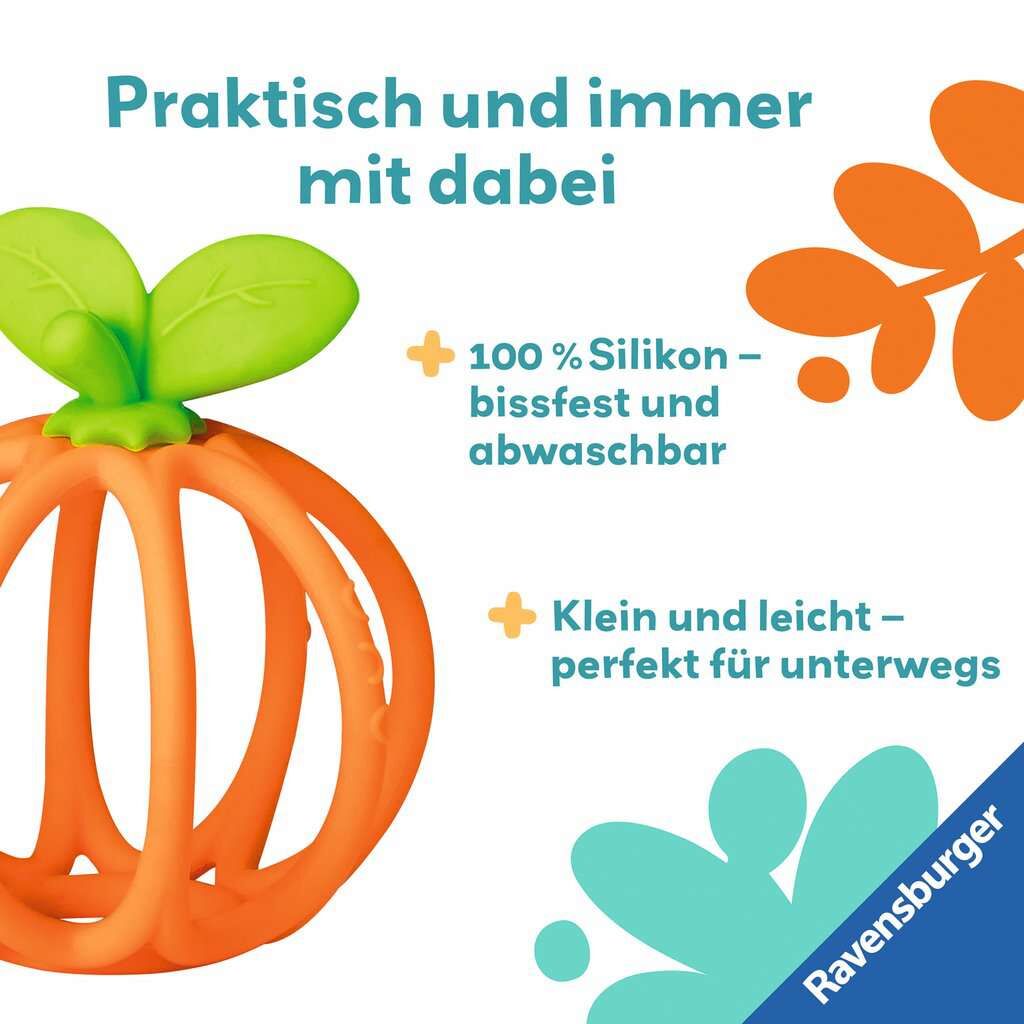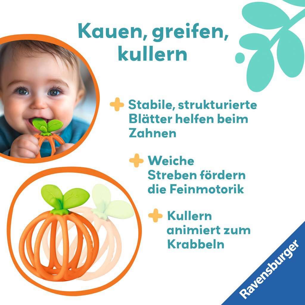 Kullernder Greifling zum Beißen und Spielen # zu 100% aus Silikon! Die weiche Frucht lädt zum Greifen ein, die härteren Blätter zum Kauen, wenn die ersten Zähne kommen.