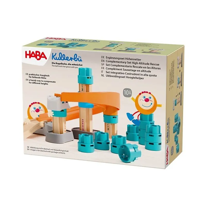 Höhenfans aufgepasst! Alle experimentierlustigen Wagehälse bekommen mit diesem HABA Kullerbü Ergänzungsset Höhenretter den Extrakick. Der Säulenerhöher, der in diesem Set gleich 10-mal enthalten ist, passt auf jede HABA Kullerbü Säule. Praktisch, auch mehrere ...