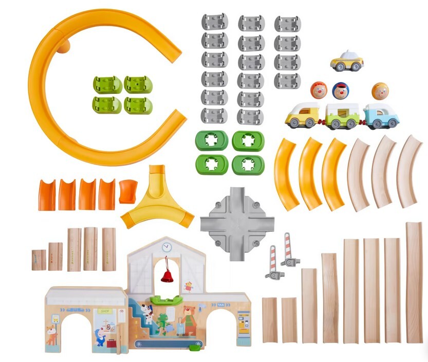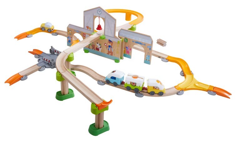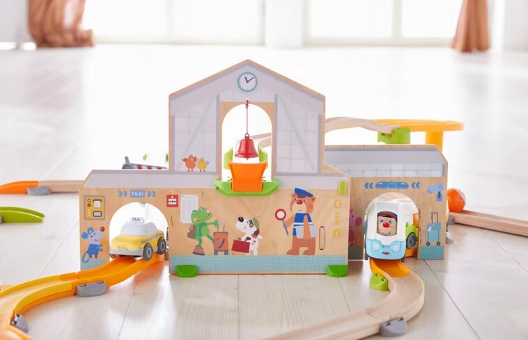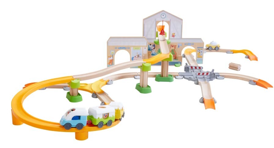 Der Bahnhof für die Kullerbü-Spielbahn von HABA ist eine große Spielkulisse für Kinder ab 2 Jahren. Über die abwechslungsreichen Holzschienen fährt ein moderner Schnellzug. Die drei Waggons lassen sich aufklappen, damit die drei Charakterkugeln ein- und ausste...