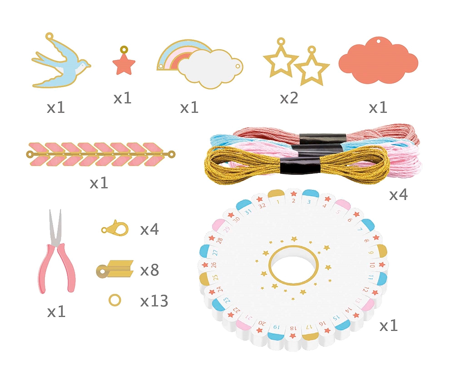 ab 8-14 Jahren 1 x Zange 1 x Kumihimo-Scheibe 4 x Garn 6 x Anhänger 4 x Verschlüsse 8 x Verbindungstücke 13 x Ringe Kumihimo, einer alten japanischen Flechttechnik, mit der sich wunderschöne Perlenketten gestalten lassen. Dank der beigelegten Kumihimo-Scheibe ...