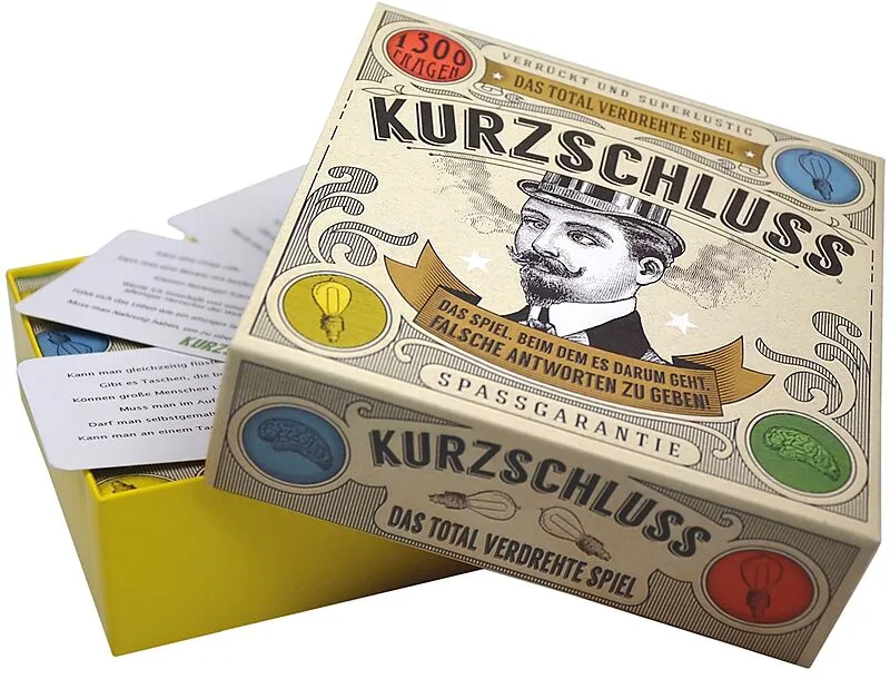 Kurzschluss Das total verdrehte Spiel! Kurzschluss ist ein verrücktes und unterhaltsames Gesellschaftsspiel, wo das Ja zum Nein und das Nein zum Ja wird. Mehr als 1.300 alberne, verrückte und lustige Fragen, bei denen es darum geht blitzschnell und geistesgege...