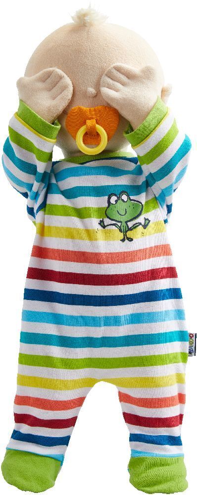 Ob Krümel ein Mädchen oder Junge ist, bleibt jedem Kind individuell überlassen, denn gestaltet haben wir das Baby neutral. Natürlich bringt Krümel auch einen Schnuller mit, der dank Magnet im Mund bleibt.