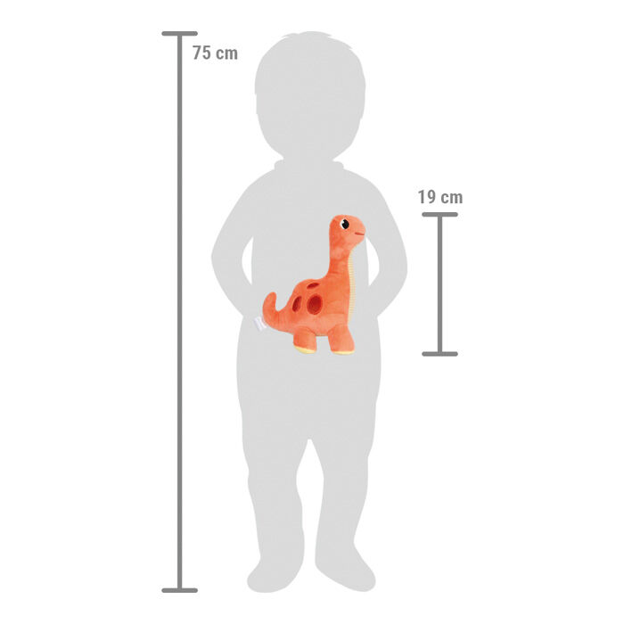 Dieser pummelige rote Brontosaurus ist nicht nur ein kuscheliger Plüschfreund, sondern ein treuer Begleiter durch die aufregenden Phasen der Kindheit. Babys und Kleinkinder können sich an der weichen, anschmiegsamen Oberfläche des Stofftiers sicher und geborge...