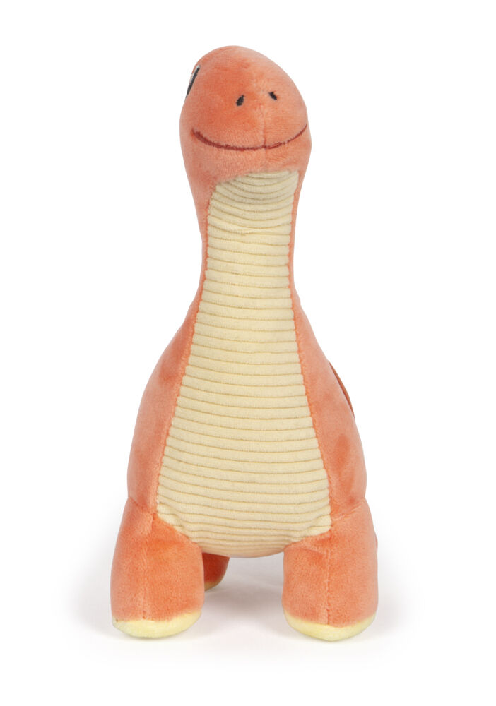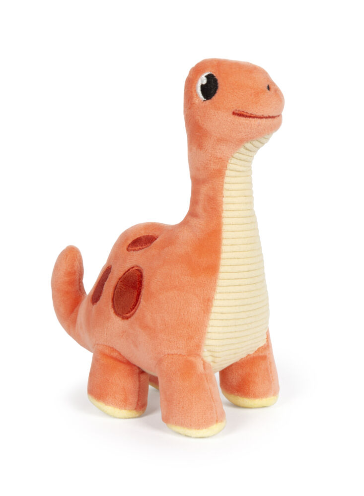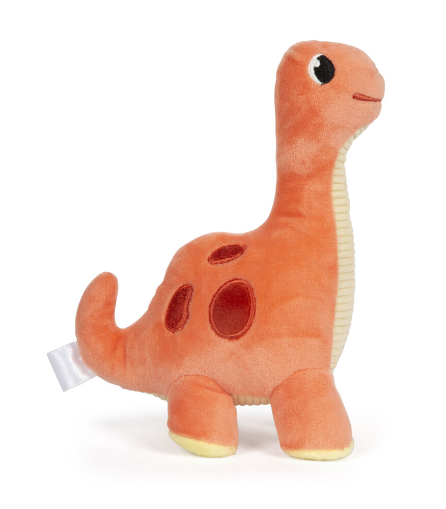 Dieser pummelige rote Brontosaurus ist nicht nur ein kuscheliger Plüschfreund, sondern ein treuer Begleiter durch die aufregenden Phasen der Kindheit. Babys und Kleinkinder können sich an der weichen, anschmiegsamen Oberfläche des Stofftiers sicher und geborge...