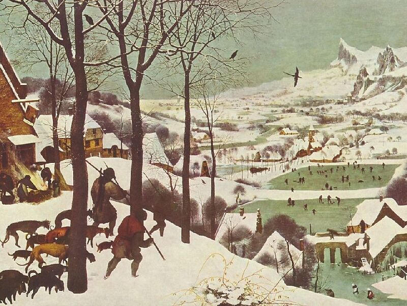 Pieter Bruegel d. Ä. - Zyklus der Monatsbilder, Szene: Heimkehr der Jäger (Monat Januar), Detail - 1565 - Öl auf Holz - Wien - Kunsthistorisches Museum - Niederlande (Flandern) - Renaissance