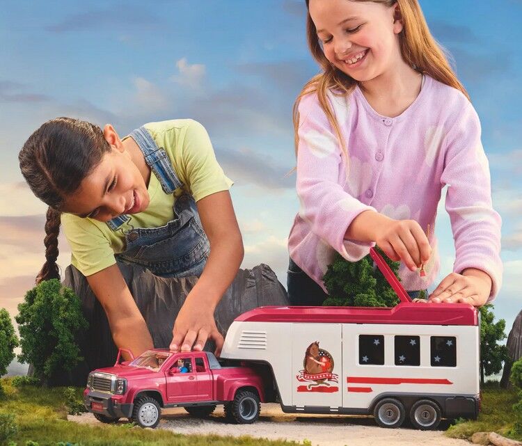 Lakeside Truck mit Anhänger Der coole Lakeside Truck mit dem großen Anhänger ist mal wieder unterwegs. Hannah und Mr. Kramer freuen sich schon: Sie fahren zu einem Western-Abenteuer mit dem Quarter Horse Hengst und dem Paint Horse Wallach. Am Morgen haben sie ...