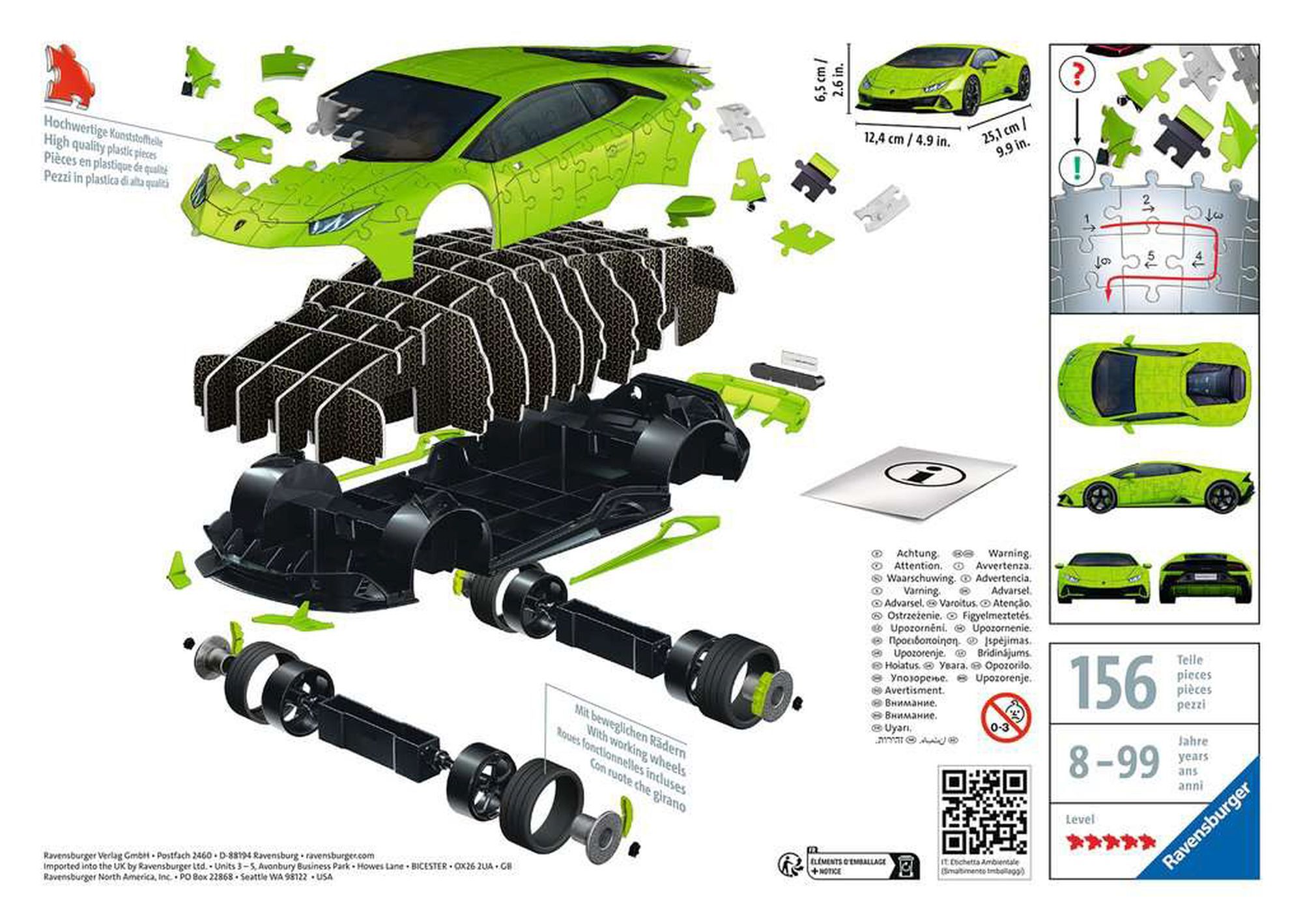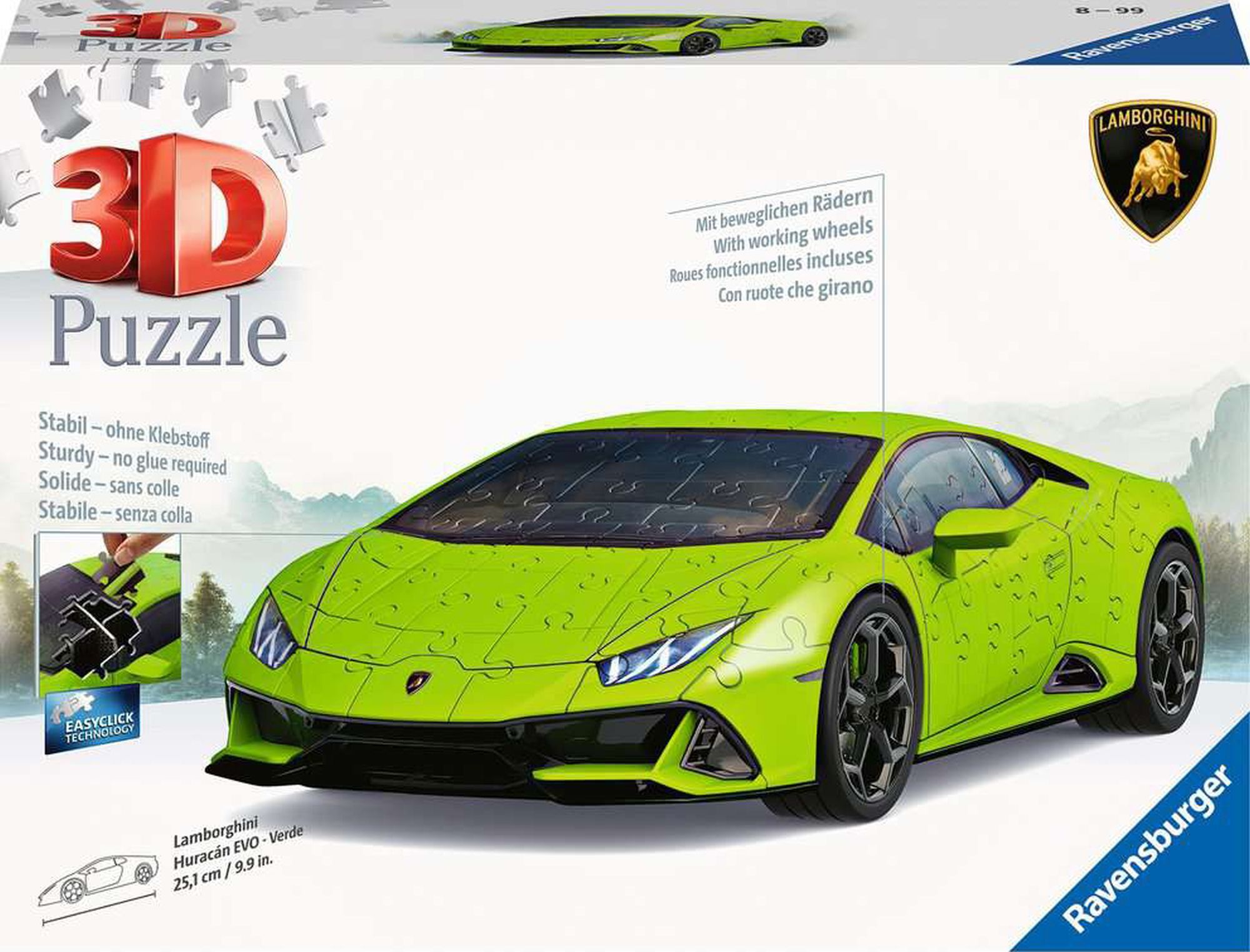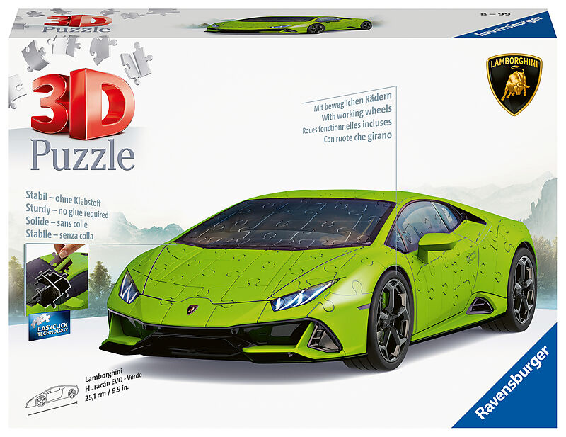 Der weltweit bekannte Sportwagen Lamborghini Huracn EVO in grün als faszinierendes 3D Puzzle Modell im Maßstab 1:18. Die 108 Puzzleteile passen dank Easyclick Technology perfekt zusammmen. Ergänzendes Zubehör und eine stabilisierende Innenkonstruktion vervolls...
