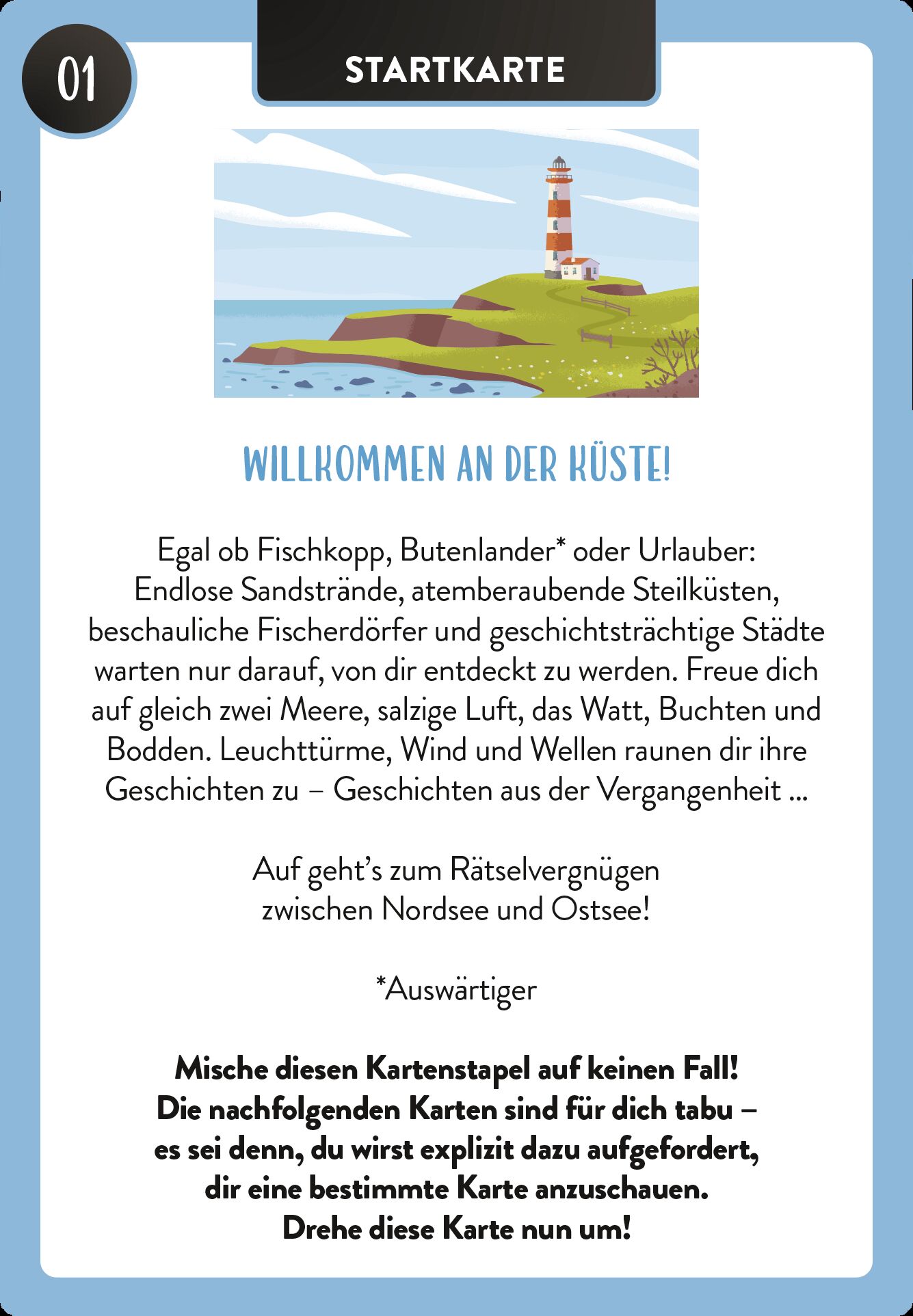 Originelles Escape-Spiel für Erwachsene quer durch Norddeutschland Der nächste Escape-Room heißt Escape-Region: Auf 50 Rätsel-Karten führt das spannende Escape-Spiel an der Küste entlang von Ost- und Nordsee und vorbei an bekannten Sehenswürdigkeiten. Auf der...