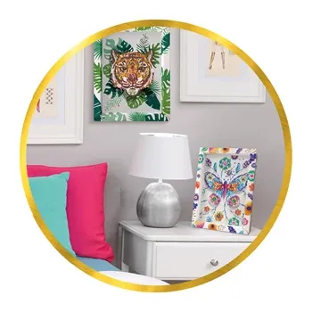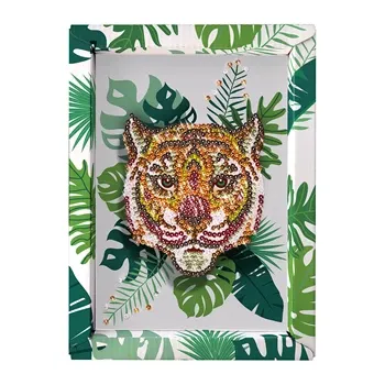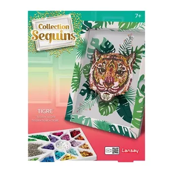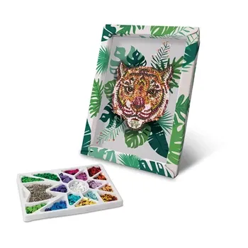 Mit Pailletten ein schönes Bild kreieren. Die Abbildung eines Tigers liegt auf einer Styroporplatte, die als Basis für die Befestigung dient. Es sind kleine Nadeln enthalten. Inkl. Setzkasten als Ablage für die verschiedenen Pailletten. Dank dem Rahmen lässt s...