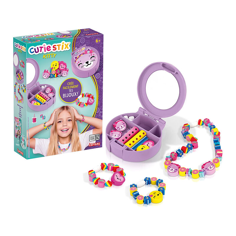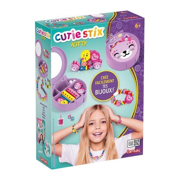 Cutie Stix Schmuck Kreativ Set zum Herstellen von einzigartigen Hals- und Armbänder - die bereits zugeschnittenen und vorgebohrten Stix nach eigenem Geschmack zusammensetzen. Praktisches Schmuckkästchen. Inhalt: 1 Schmuckkästchen (Katzensujet), 1 Band, 4 Versc...