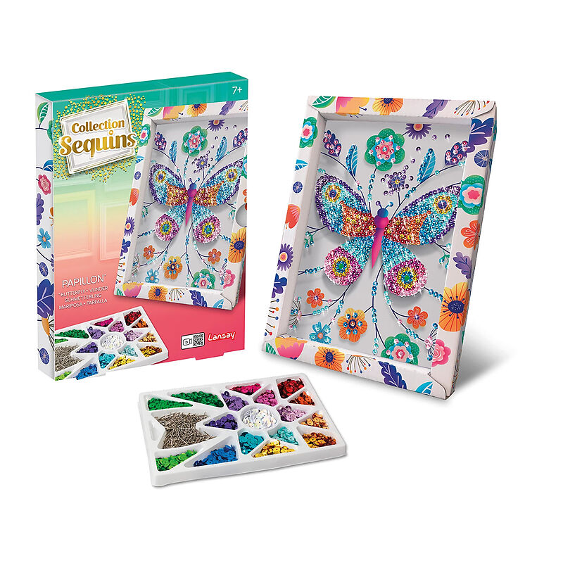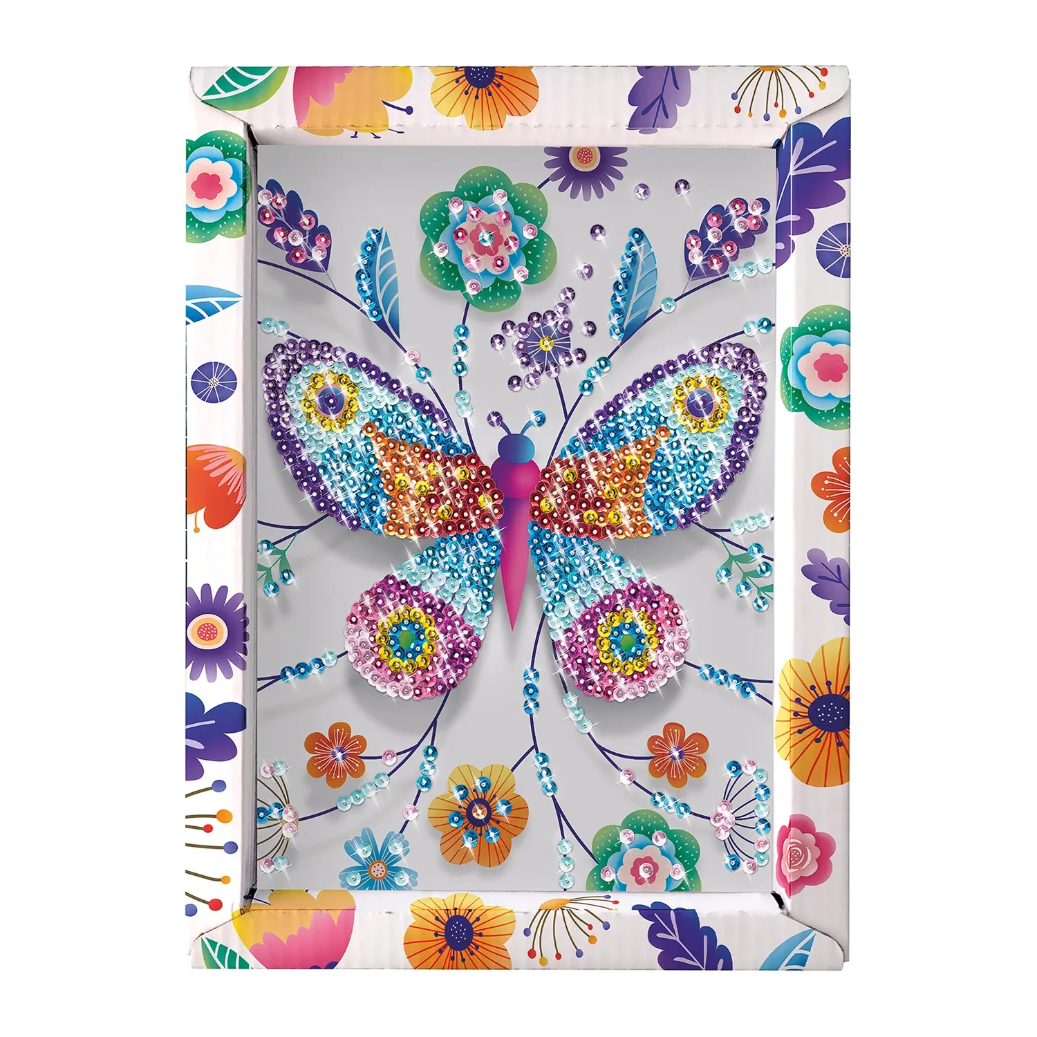 Mit Pailletten ein schönes Bild kreieren. Die Abbildung eines Schmetterlings liegt auf einer Styroporplatte, die als Basis für die Befestigung dient. Es sind kleine Nadeln enthalten. Inkl. Setzkasten als Ablage für die verschiedenen Pailletten. Dank dem Rahmen...