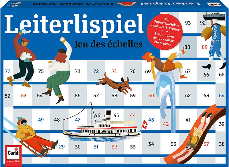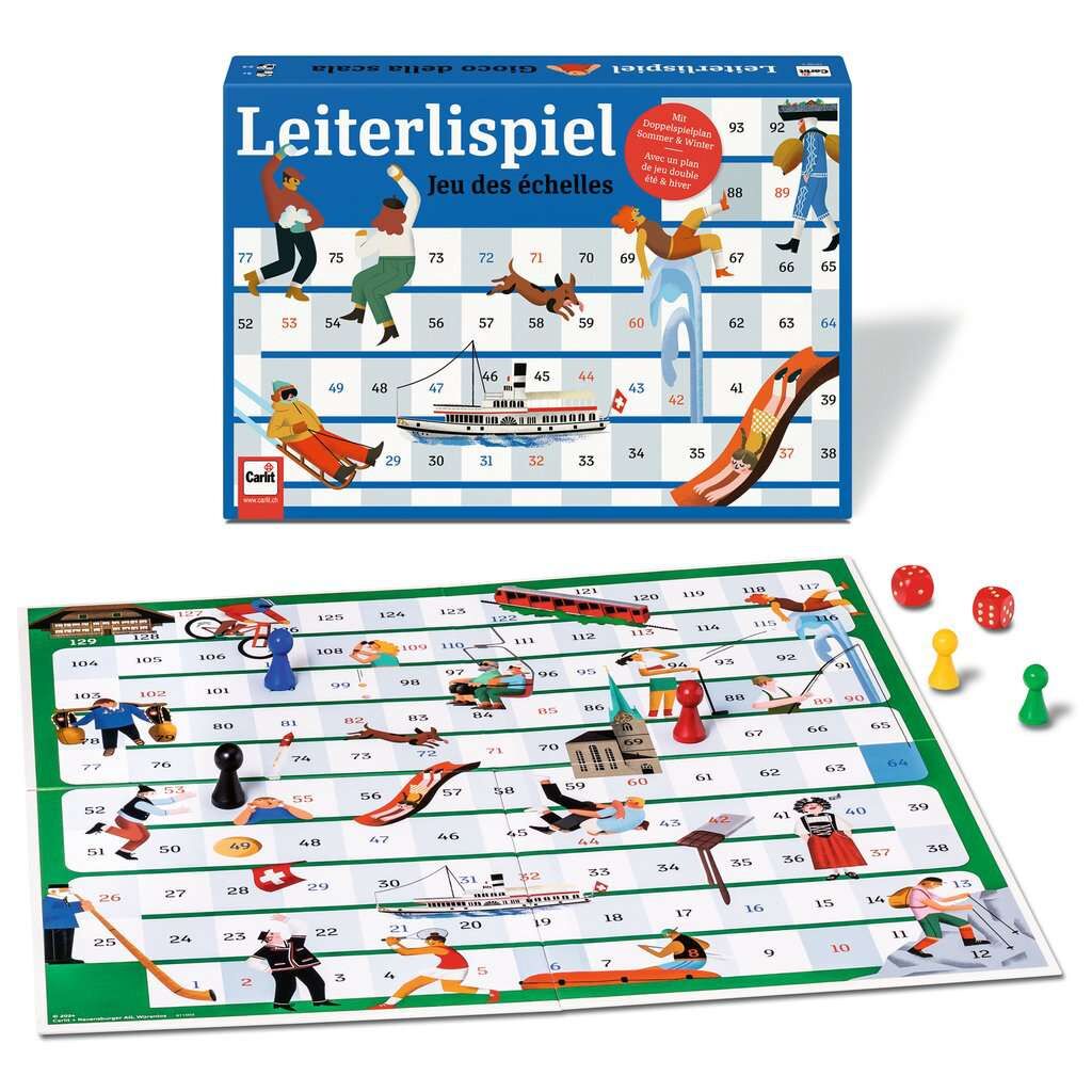 Wer hat das Glück, schnell die Leitern hinaufzuklettern? Aber Vorsicht, ebenso schnell kann es wieder abwärts gehen! Ein spannendes Auf und Ab bis zum letzten Spielzug. - Ausgabe 2024.