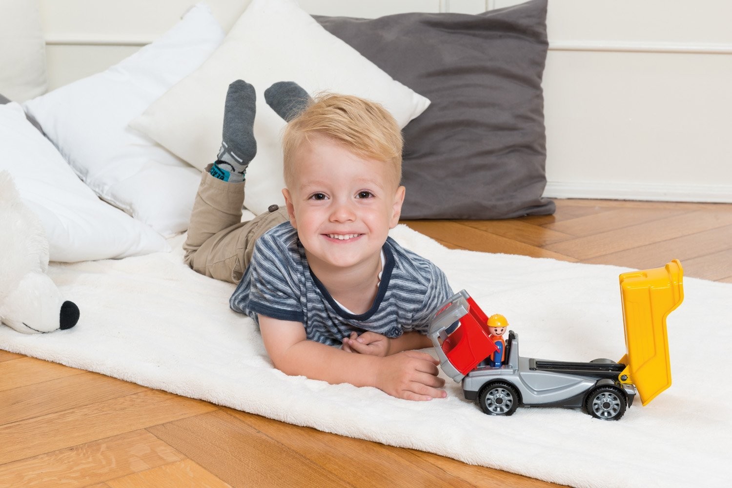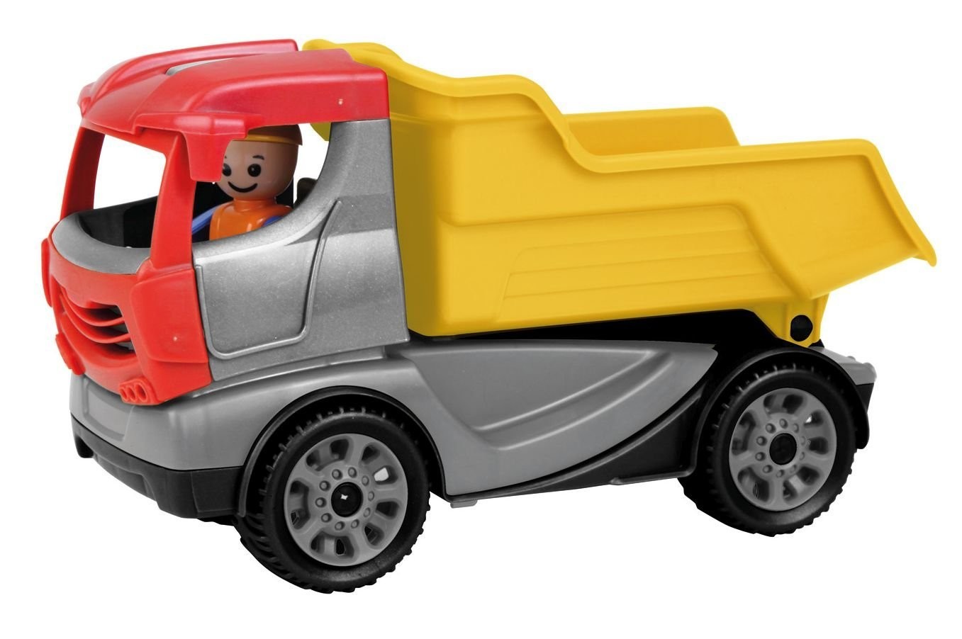 LENA Truckies Kipper. Verzinkte Stahlachsen. Führerhaus zum Öffnen und Bespielen. Mulde mit Kippfunktion. Anhängerkupplung. Mit LENA Spielfigur. 22 cm Indoor & Outdoor geeignet für Kinder ab 2 Jahren. Verpackt in buntem Schaukarton. MADE IN EUROPE.