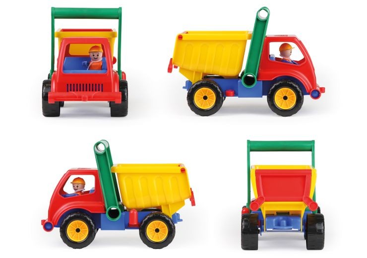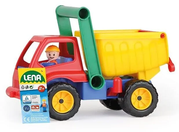 LENA Aktive Kipper. Verzinkte Stahlachsen. Führerhaus zum Öffnen und Bespielen. Verriegelbare Kippmulde. Hebel mit Kippfunktion. Mit LENA Spielfigur. 27 cm. Indoor & Outdoor geeignet für Kinder ab 2 Jahren. Verpackungsart: Lose mit Hangtag und Produktinformati...