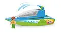 LENA BOAZZ Sportboot mit Pumpe. Kabine zum Öffnen und Bespielen. Zwei Sitzplätze. Mit Wassertank und Spritzfunktion. Möglichkeit, ein Boatie als Beiboot zu transportieren. Mit LENA Spielfigur. 36 cm. Indoor & Outdoor geeignet. Für Kinder ab 2 Jahren. Verpackt ...