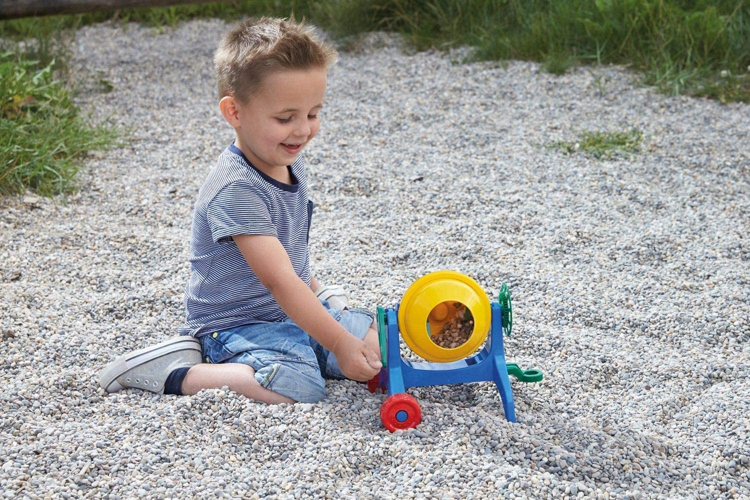 LENA Betonmischer, klein, bunt. Hochwertiger ABS-Kunststoff. Handmischer mit echter Funktion. Mit Anhängerfunktion. 27 cm. Indoor & Outdoor geeignet für Kinder ab 2 Jahren. Verpackungsart: Lose mit Hangtag und Produktinformationen. MADE IN EUROPE.