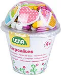 LENA Holzperlen Cupcakes, pink. 170 Perlen, 3 Anhänger und 3 Kordeln. Geeignet für Kinder ab 4 Jahren. Verpackt in bunter Aufbewahrungsbox & Banderole mit Produktinformationen.