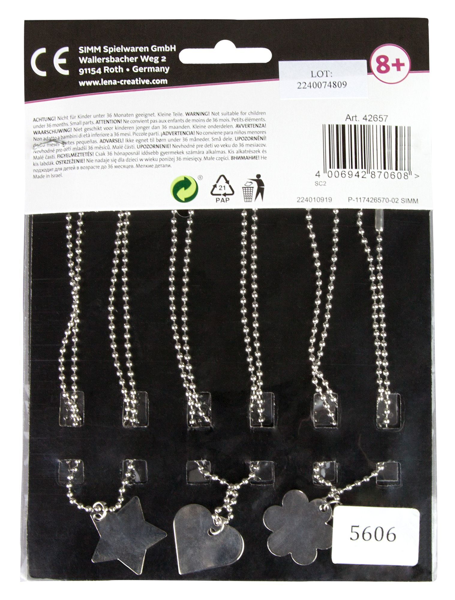 Nachfüllpack für Metal Jewelry (EAN 4006942868001). Dieses Nachfüllpack enthält 6 weitere Ketten. Verpackt im Beutel mit Header. Das Familienunternehmen SIMM Spielwaren GmbH aus Roth bei Nürnberg setzt seit ca. 50 Jahren Maßstäbe in der Herstellung qualitativ ...