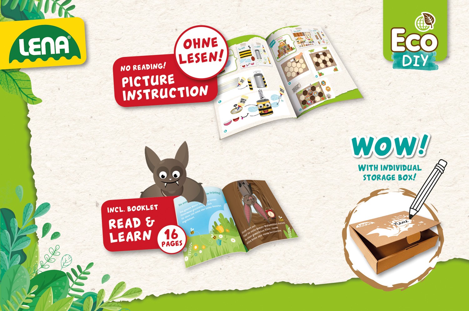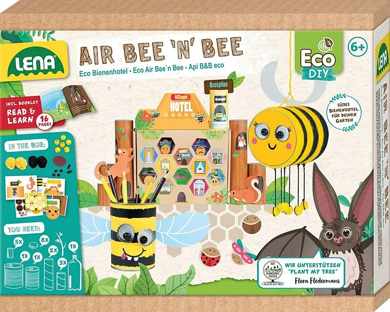LENA Eco Air BeenBee. Süßes Upcycling-Bastelset für kleine Gastgeber bedrohter Bienen und Insekten: ein Outdoor-Bienenhotel, ein Stiftebecher und ein Indoor-Bienenhotel zum Bespielen inkl. Bienen zum Basteln. Mit Storybook und ausführlicher, farbiger Anleitung...