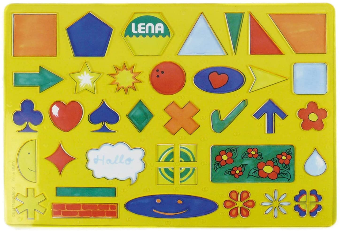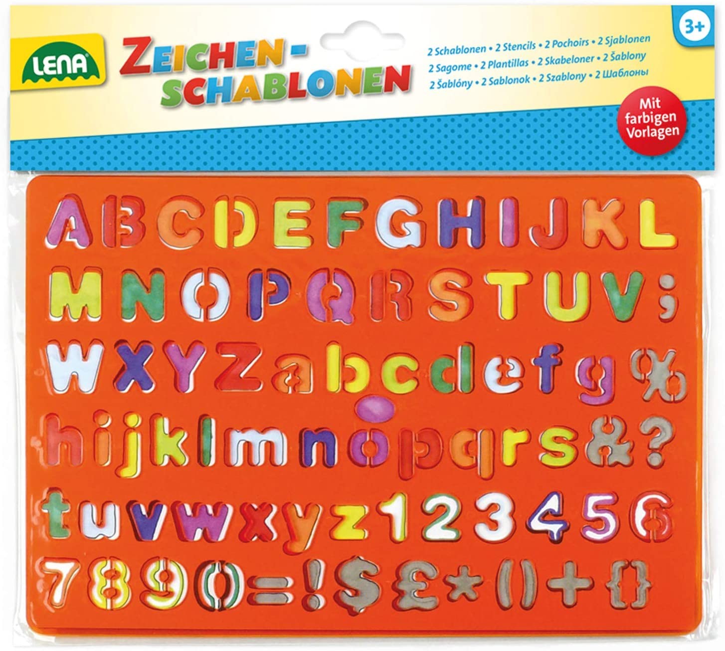 LENA Zeichenschablonen Alphabet/Zahlen und Zeichen. 2 Schablonen. 26 x 19 cm. Geeignet für Kinder ab 3 Jahren. Verpackungsart: Beutel mit Header.