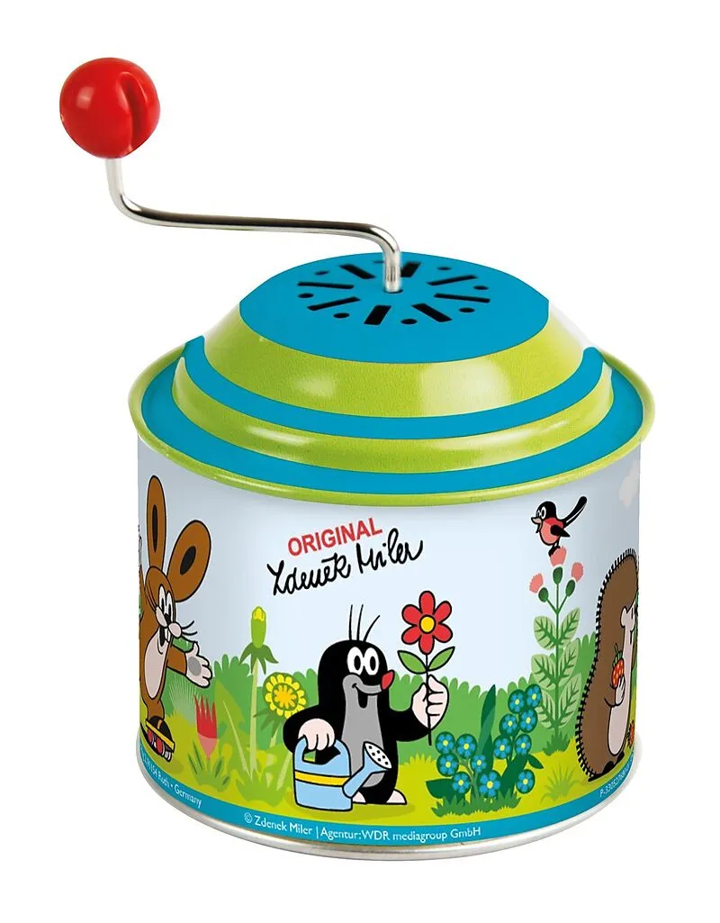 LENA tin toys Musikdrehdose Der kleine Maulwurf. Mit Musikwerk Der Frühling Melodie. 7,5 cm. Geeignet für Kinder ab 18 Monate. Verpackungsart: Display mit Produktinformationen. MADE IN EUROPE.