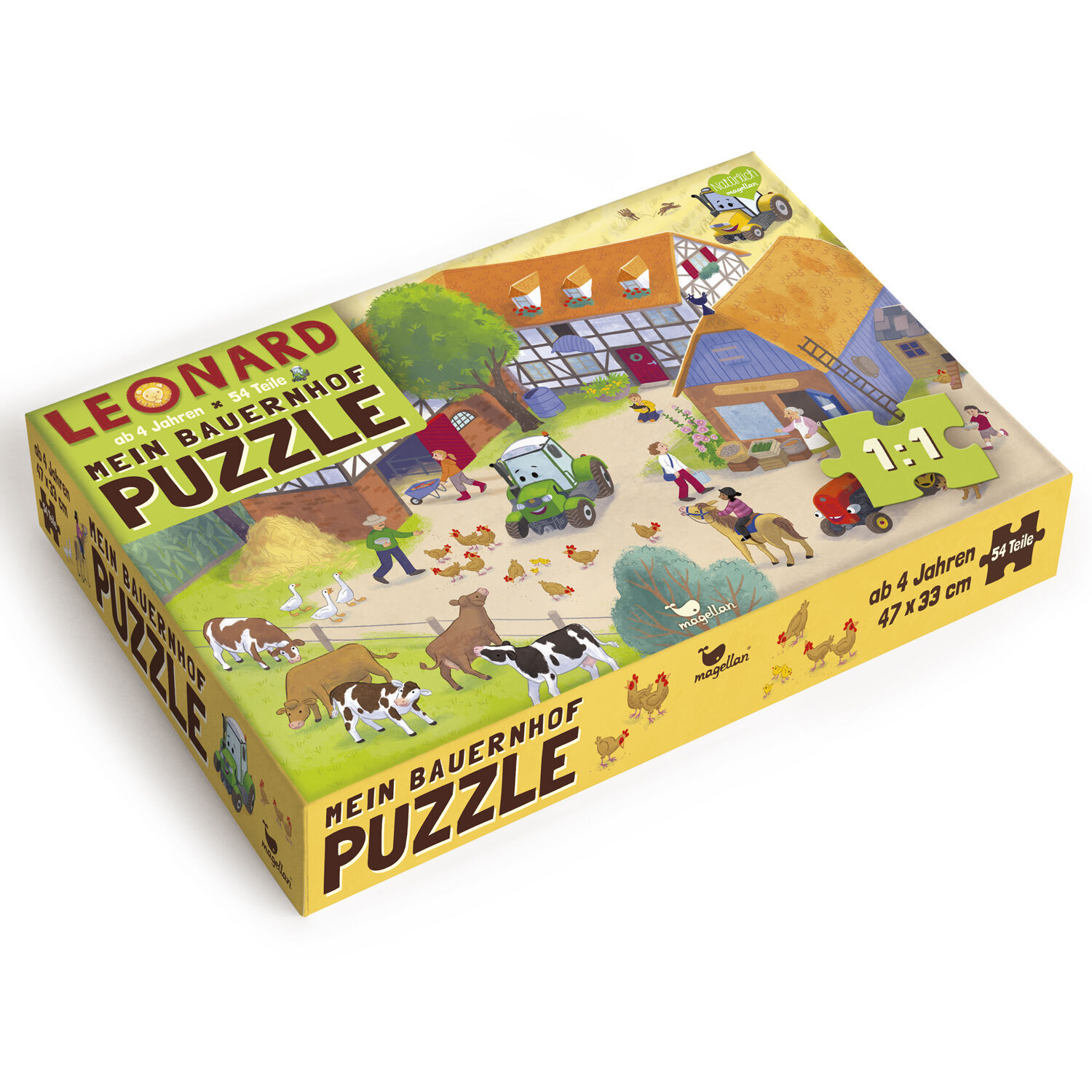 Puzzle-Spielspaß zum beliebten Bilderbuch Traktor Leonard Auf dem Bauernhof gibt es jede Menge zu entdecken und Traktor Leonard und seine Fahrzeug-Freunde sind mittendrin! Wie viele Hühner haben sich versteckt und welches Tier bellt hier so laut? Auf spieleri...