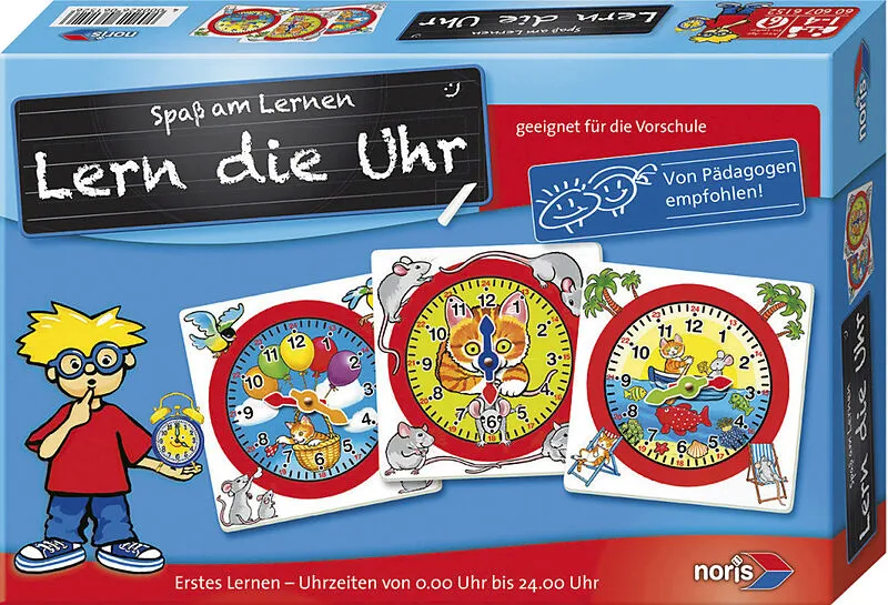 Mit den lustigen "Lernuhren" die Uhr lernen und begreifen. Die zweiteiligen Puzzle-Teile zeigen dem Kind immer ein bestimmtes, markantes Ereignis aus dem Alltag und die entsprechende Uhrzeit dazu. Der Puzzle-Schnitt sorgt dafür, dass immer nur die ri...