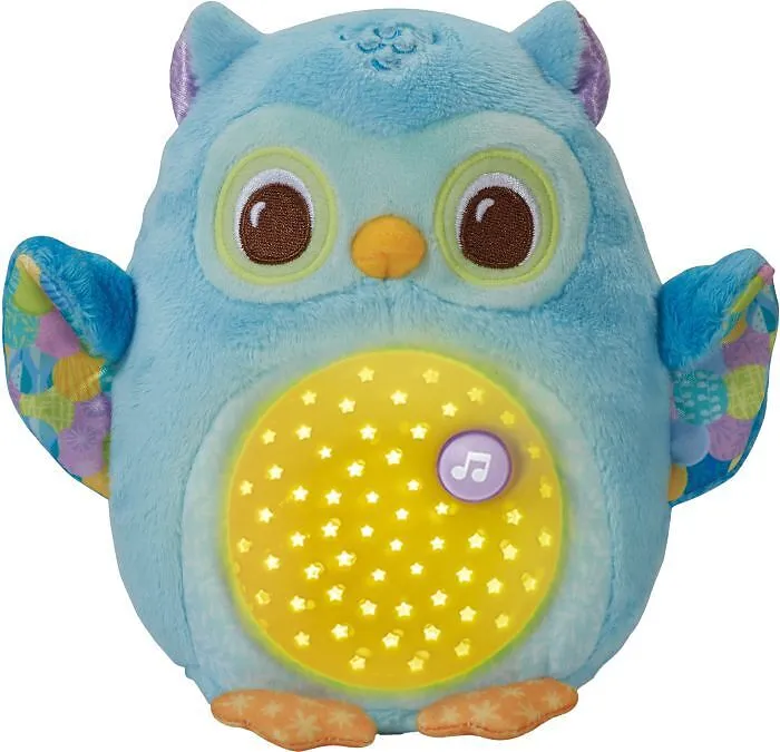 Leuchtende Plüscheule Beruhigungshilfe von der plüschigen Eule! Niedliche Eule aus Plüsch, die das Kind mit sanften Liedern, Melodien und Lichtern beruhigt. Musiktaste auf dem Bauch löst Lieder, Naturgeräusche und beruhigende Melodien aus. Sternenschablone auf...