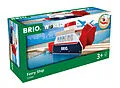 Schiff ahoi! Züge können nicht über#s Wasser fahren, aber Fähren. Bring die Züge trocken auf der Fähre zum anderen Ufer. Das Schiffshorn ertönt und das Licht geht an, wenn Du den Knopf drückst. Mit den beiden enthaltenen Anschlussgleisen kannst Du die Fähre üb...