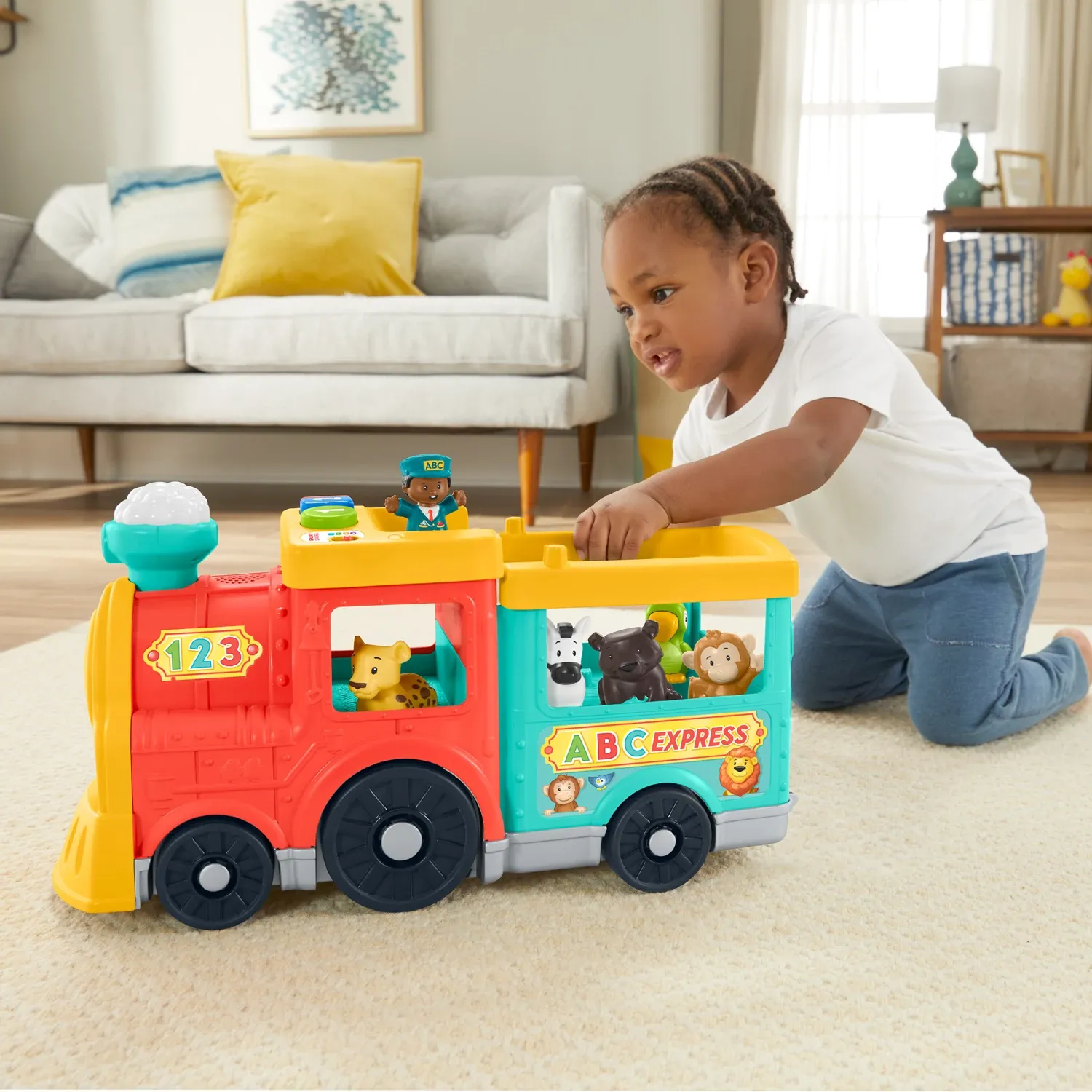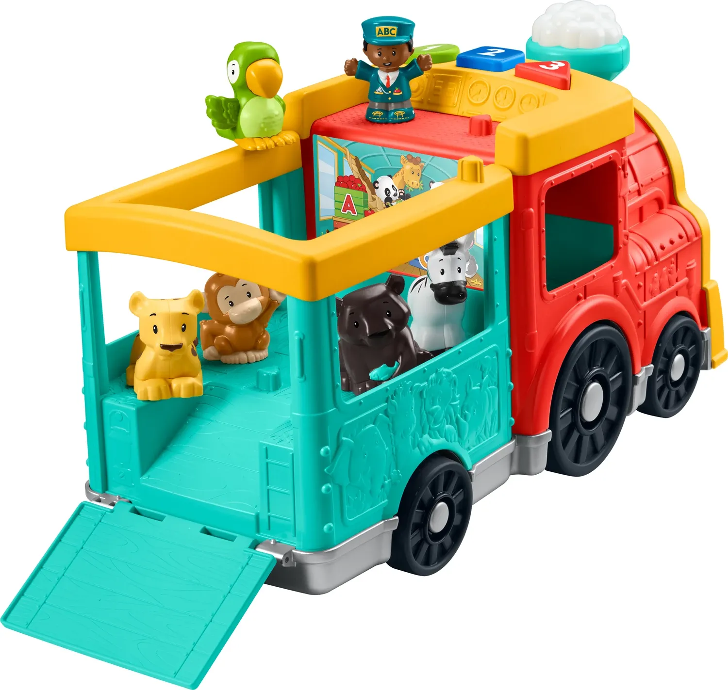 Während die kleinen Zugführer ihre exotischen Passagiere durch das Wohnzimmer tuckern lassen. werden mit den Smart Stages Lerninhalten das Alphabet. das Zählen. die Farben und vieles mehr vermittelt. Mit 5 Little People Figuren.
