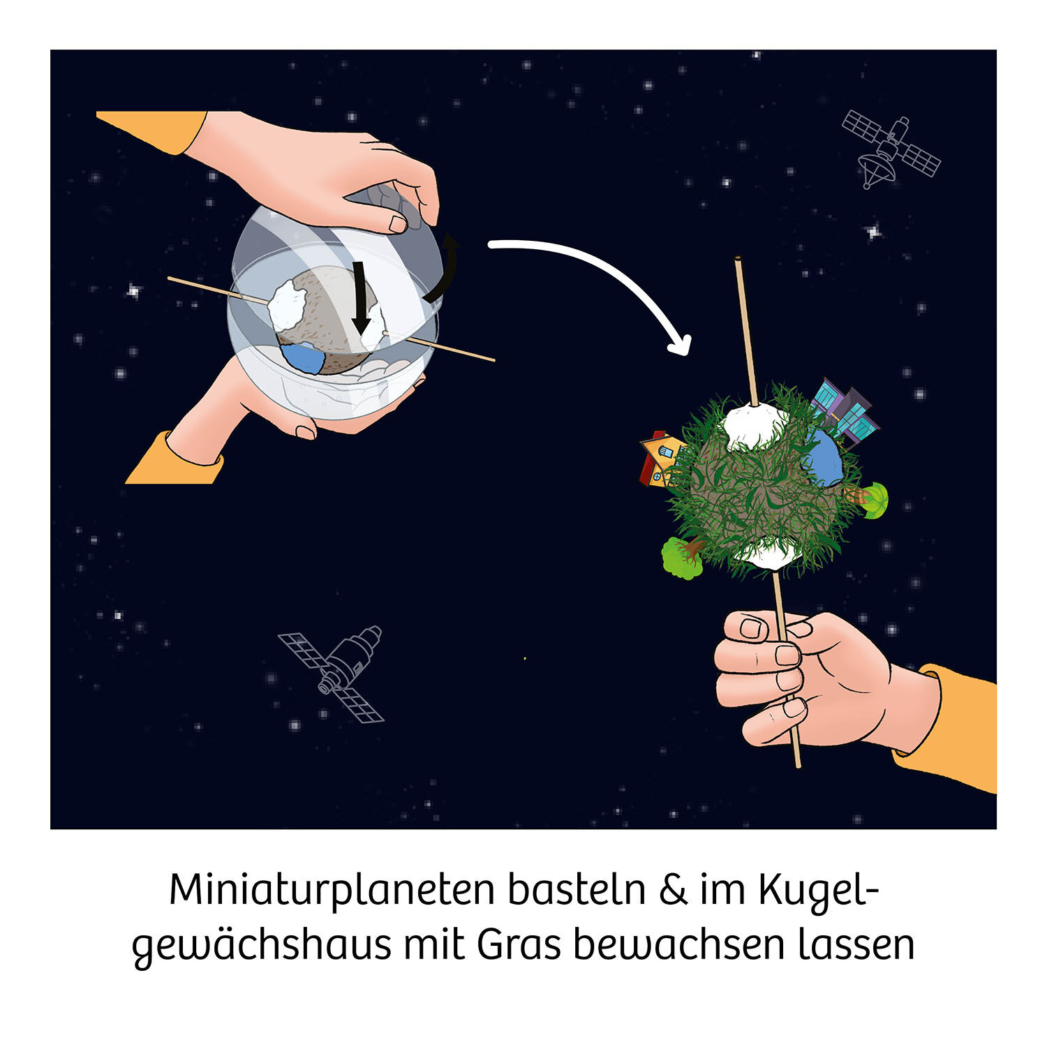 Einen eigenen Mini-Planeten zum Leben erwecken! Die Kinder formen einen Ball aus Erde, auf dem sie aus Gips Pole und Meere anbringen. Schnell in die Kugel-Atmosphäre hängen und schon bald sprießt Grün auf dem Planeten. Fehlen nur noch die Aufstecker wie kleine...