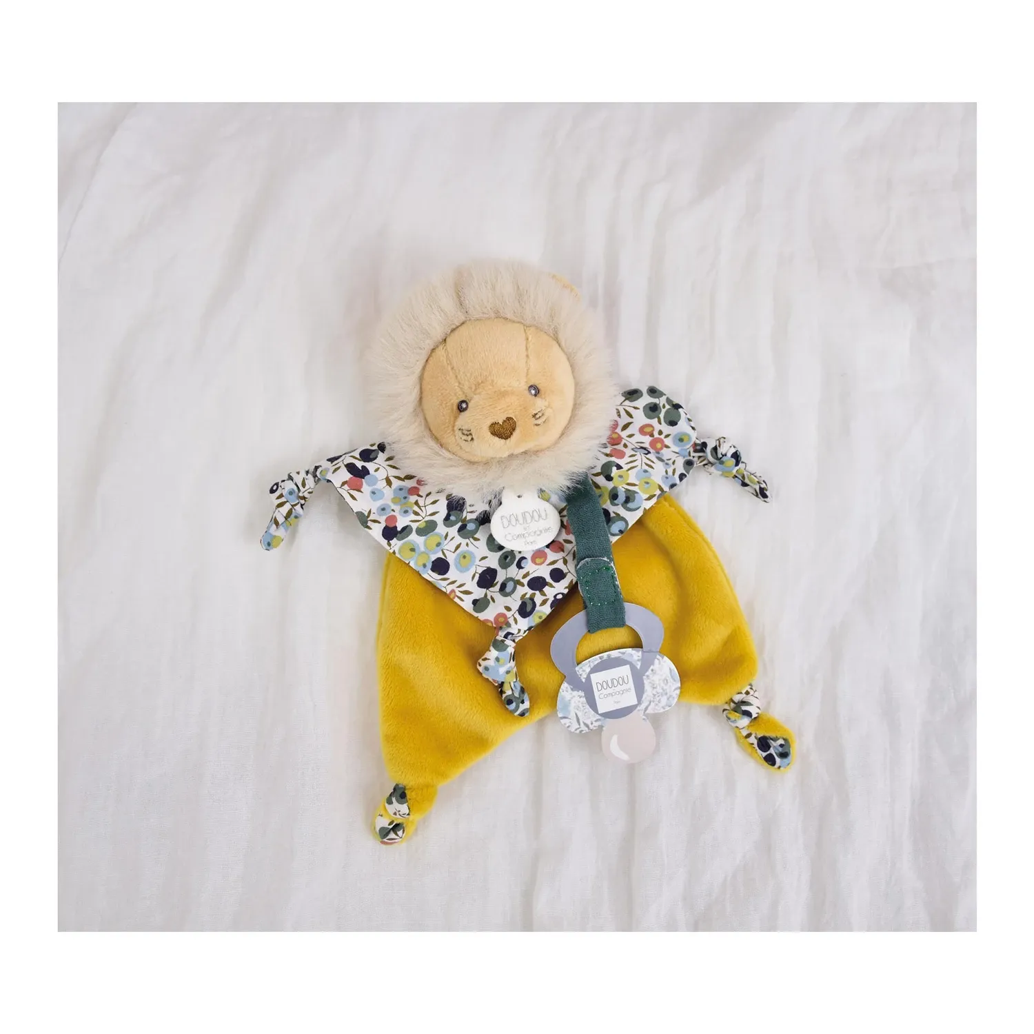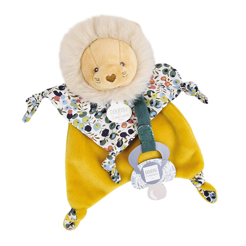Der Löwe als Schmusetuch mit Schnullerhalter ist ein hübsches Kuscheltier. Dank dem Schnullerhalter ist der Schnuller immer in Griffnähe. Verpackt im dazu passenden Geschenkkarton. Maschinenwäsche bei 30° Grad. Grösse: 20cm.