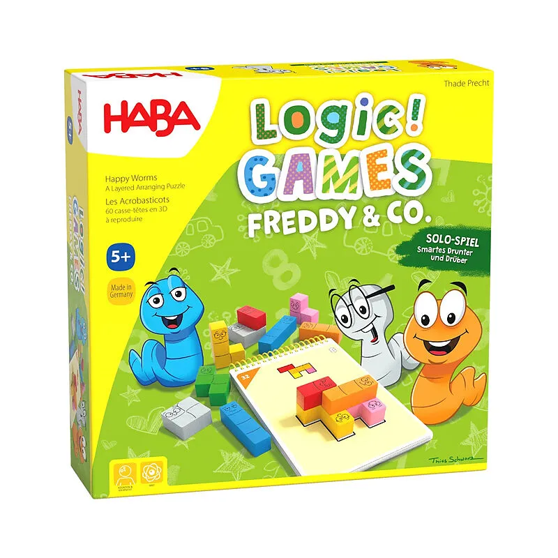 Das kompakte Logikspiel aus der HABA Reihe Logic! GAMES hat es in sich: 60 Aufgaben mit steigendem Schwierigkeitsgrad geben das Muster vor, nach dem die 14 Holzbausteine alias Freddy & Co. an- oder aufeinandergelegt werden müssen. Kinder ab 5 Jahren lernen so ...