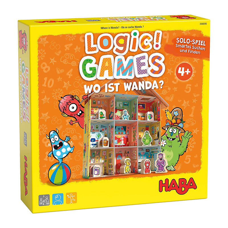 Aufgaben durch cleveres Kombinieren lösen und das kleine rote Monster finden das ist die Mission beim Logikspiel Logic! GAMES Wo ist Wanda? von HABA. Aus der Rätselbox wird im Handumdrehen ein 3D-Spiel für Kinder mit umfangreichem Spielmaterial aus Holz und Pa...