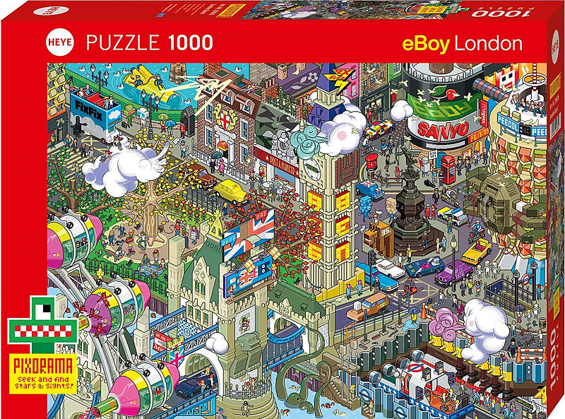 In der Serie Pixorama von eBoy gibt es keinen Brexit! Und deshalb kann man sich hier nach wie vor an den legendären Sehenswürdigkeiten von London erfreuen. So nice! Gelegte Größe: 70x50 cm.