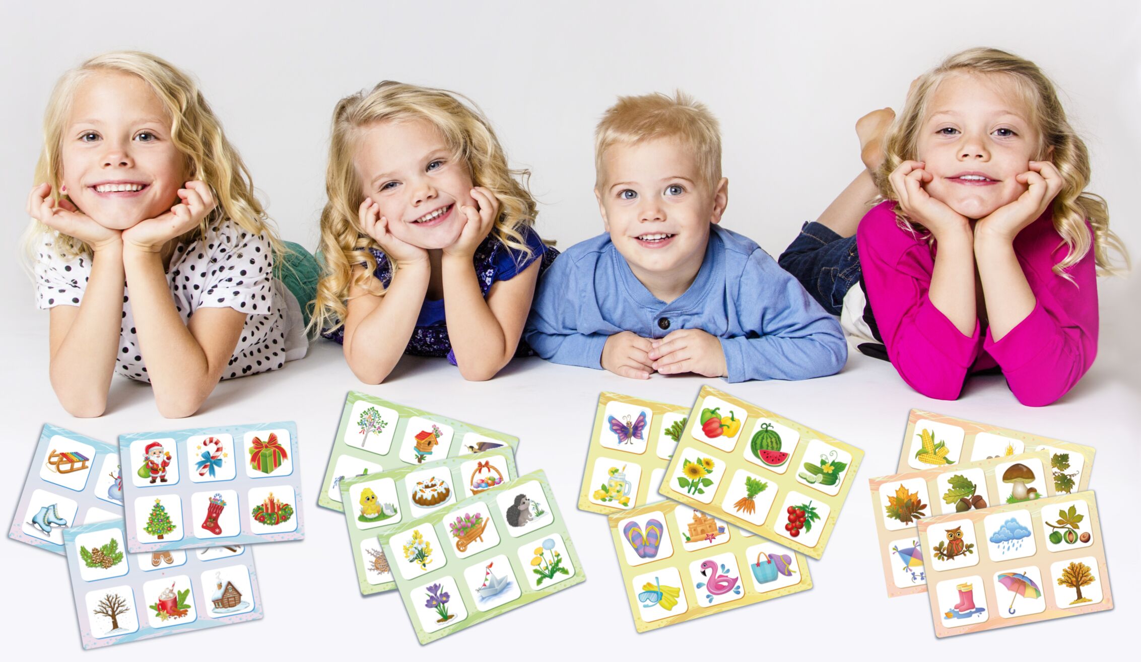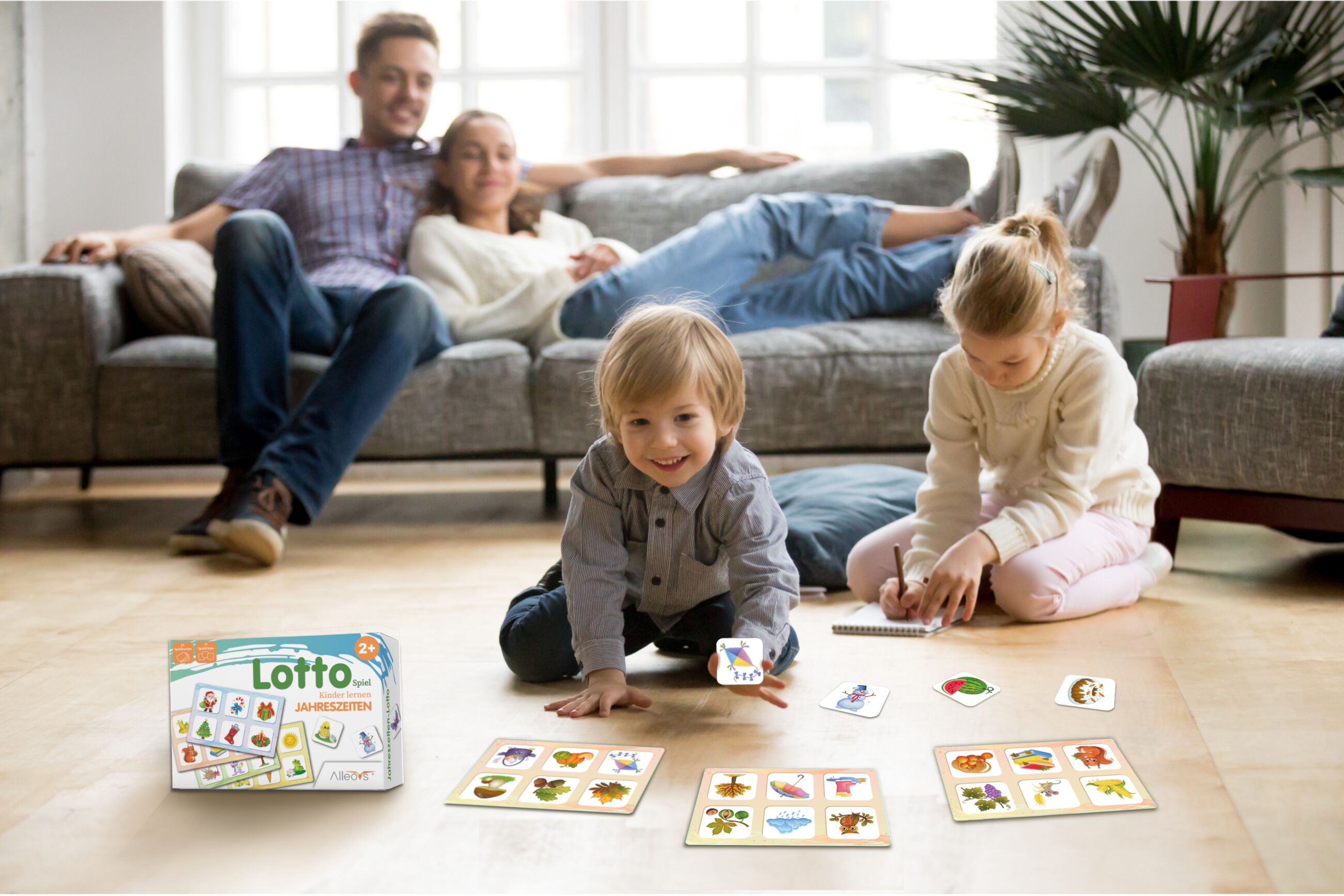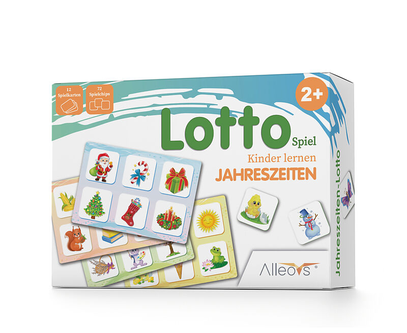 Entdecken Sie das Kinder Lotto Jahreszeiten ein pädagogisches Lernspiel für Kinder ab 2 Jahren. Mit 72 Spielchips und 12 großen Spielkarten lernen Kinder spielerisch die Besonderheiten von Winter, Frühling, Sommer und Herbst. Das Spiel fördert Gedächtnis, Fein...