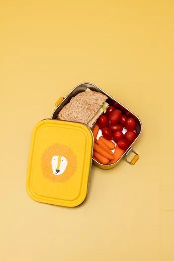 Die kleine Lunchbox im Löwen-Design kommt in einem ansprechenden Gelbton und lässt sich dank der praktischen Silikon-Clips einfach öffnen und sicher verschliessen. Sie ist farb- und geruchsneutral sowie frei von Chemikalien.