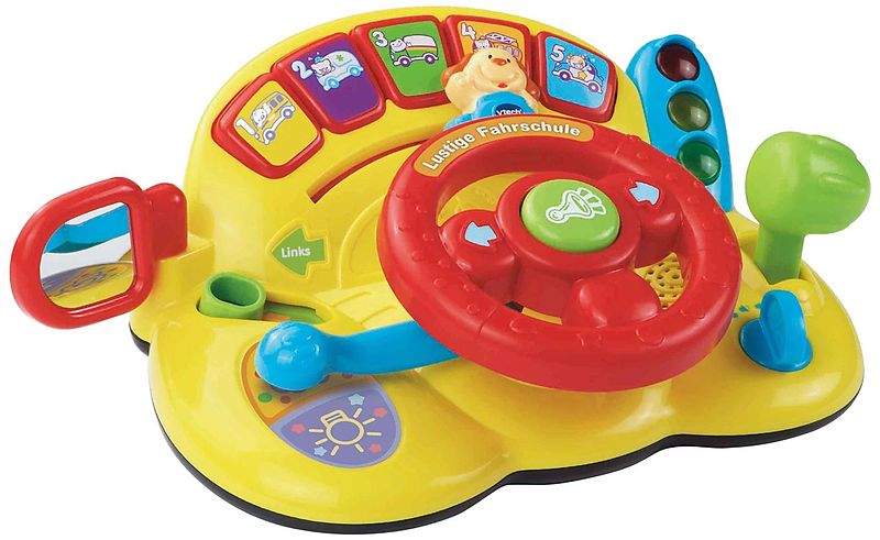 Vtech 80-166604 Lustige Fahrschule Aufgepasst, hier komm ich! Die Lustige Fahrschule fördert das Rollenspiel und die feinmotorischen Fähigkeiten 3 Spielmodi: Tiere, Fahren, Musik 5 bunte Tasten benennen Tiere, Fahrzeuge und Farben Lenkrad, Schalthebel,...