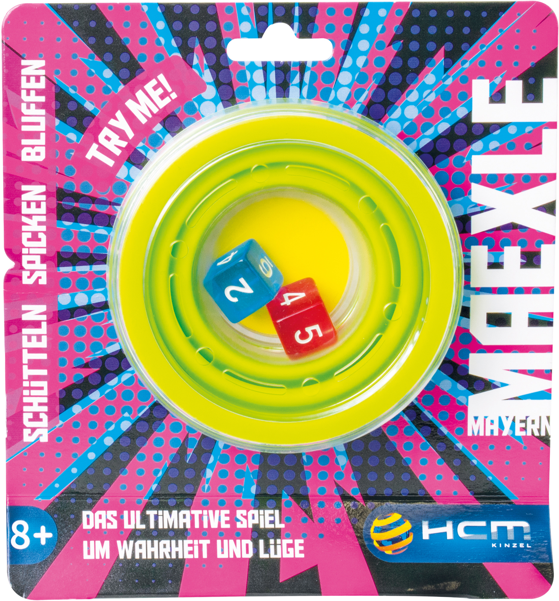 Der Spieleklassiker in Neuauflage. Im aufziehbaren Würfelbecher sind die beiden Würfel fest verschlossen. Der Spieler zieht den Becher mit den Würfeln auf, schüttelt ihn und drückt ihn dann nach unten, um die Würfel zu fixieren. Nun wirft er einen Blick auf di...