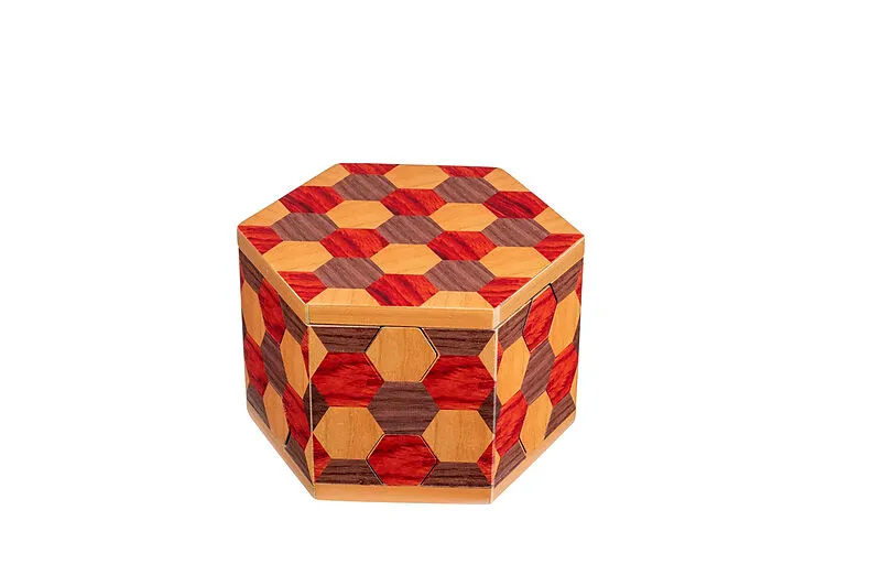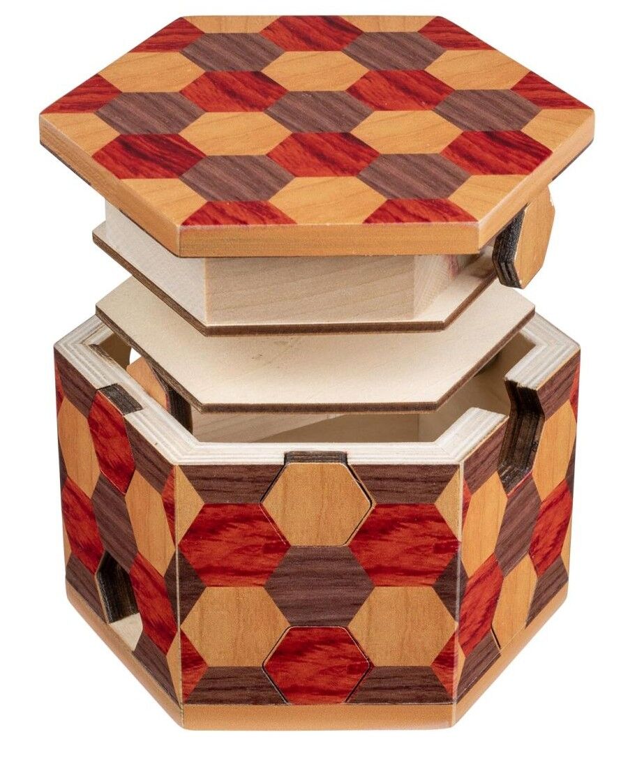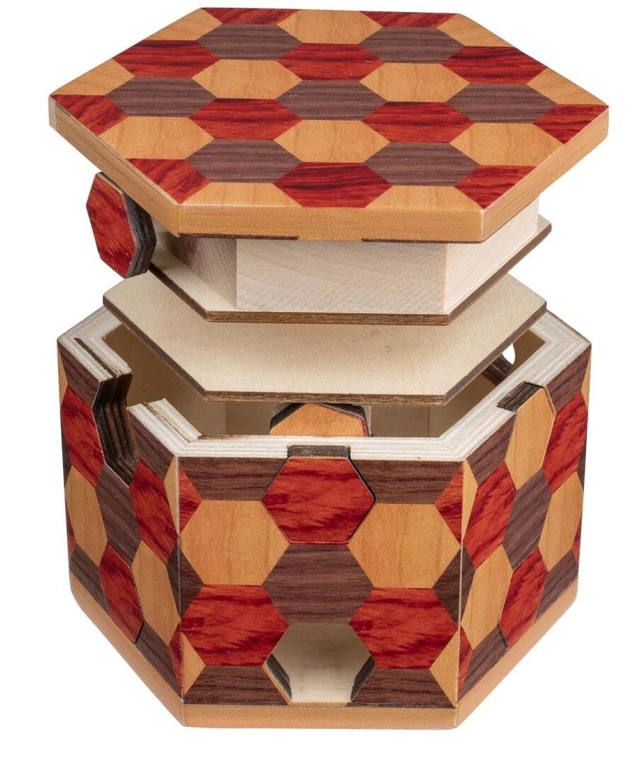 Diese stilvolle Magic Box aus Holz beeindruckt durch ihr einzigartiges Design und den cleveren Öffnungsmechanismus. Auf den ersten Blick wirkt sie wie ein dekoratives Schmuckstück, doch sie lässt sich nur durch das gezielte Reindrücken bestimmter Teile öffnen....