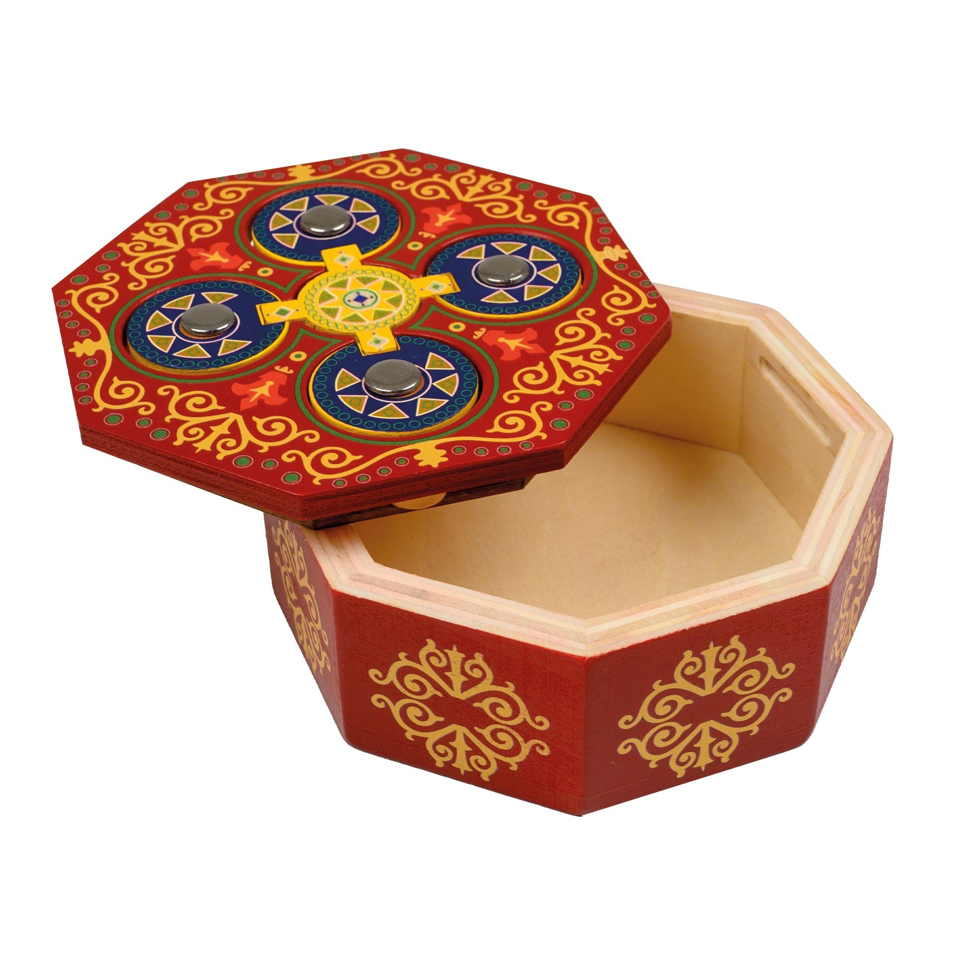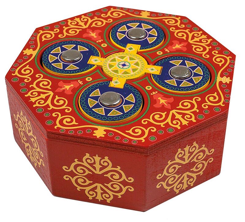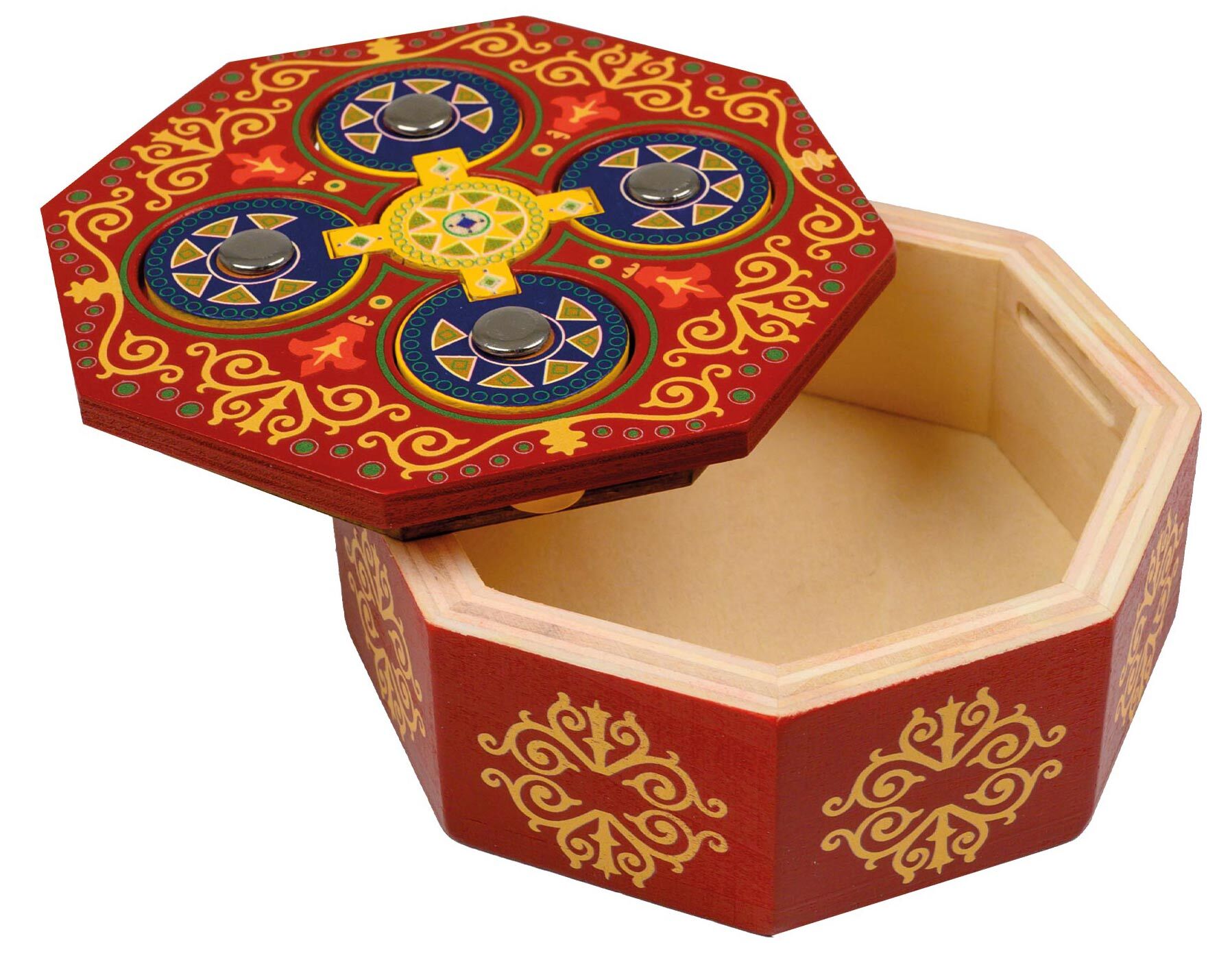 Ziel dieses Trickspiels ist es, die Truhe zu öffnen. Material: Sperrholz Maße Spiel: 100 x 100 x 40 mm Maße Verpackung: 132 x 132 x 43 mm Gewicht (kg): 0,120 Farbe: blau, gelb, rot Lernziele: Geduld, Geschicklichkeit, Konzentration Spieldauer: ca. 5 Minuten Sc...