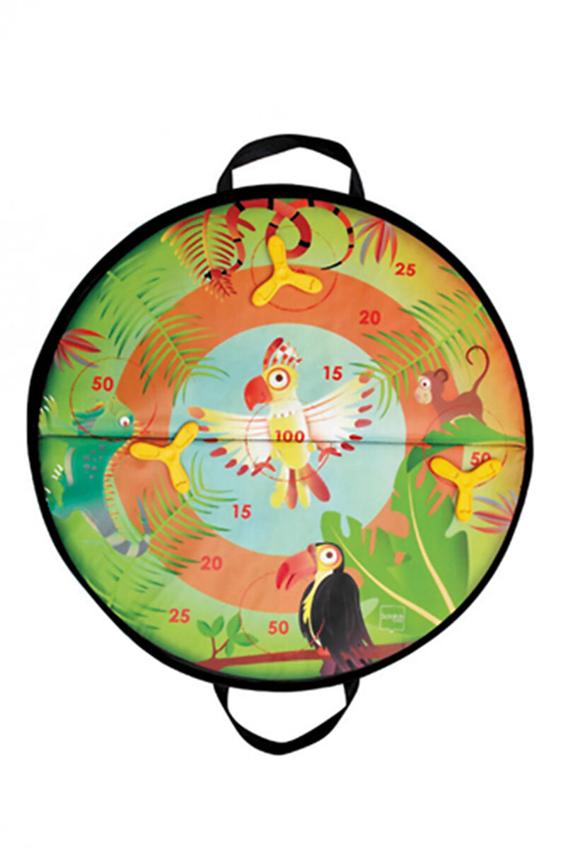Lieferumfang: 1 Zielscheibe 3 Wurfelemente (Diskers) Wirf die magnetischen Diskers aus Silikon auf die runde magnetische Zielscheibe und versuche, eine möglichst hohe Punktzahl zu erzielen. Spiele dieses Spiel am Boden oder hänge das Spielbrett an die Wand. Du...