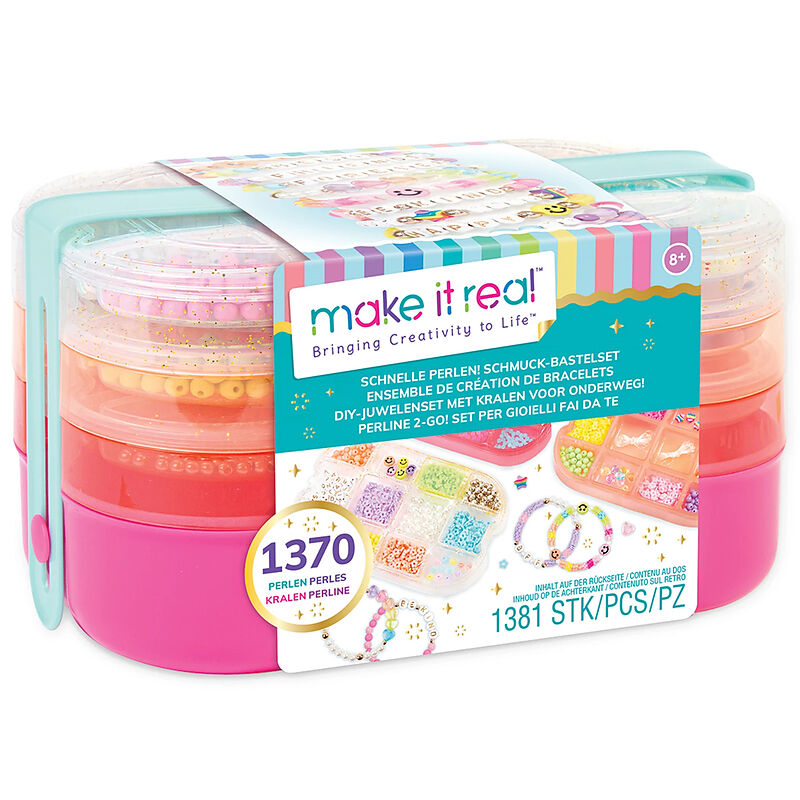 Do-It-Yourself Armbänder-Set in einer handlichen To-Go-Box mit praktischem Griff. Inhalt: 2 durchsichtige und elastische Schnüre, 4 Nylonschnüre in verschiedenen Farben, 3 Aufbewahrungsschalen, 1370 verschiedenartige Perlen, 1 Anleitung.