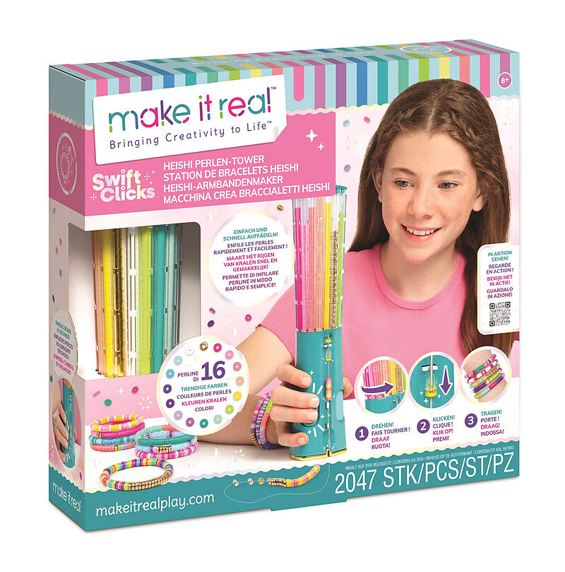 Make it real Heishi Perlen-Tower Turm zum einfachen Basteln von Heishi-Armbänder. Inhalt: 1 Perlenfädler, 1 Perlenkarussell, 2040 Heishi-Perlen, 1 Fädelstift, 1 Trichter, 1 Rolle mit 6 m durchsichtiger elastischer Schnur, 1 Ausrichtungswerkzeug, 1 Anleitung...70 Kunden haben diesen Artikel kürzlich gekauft.