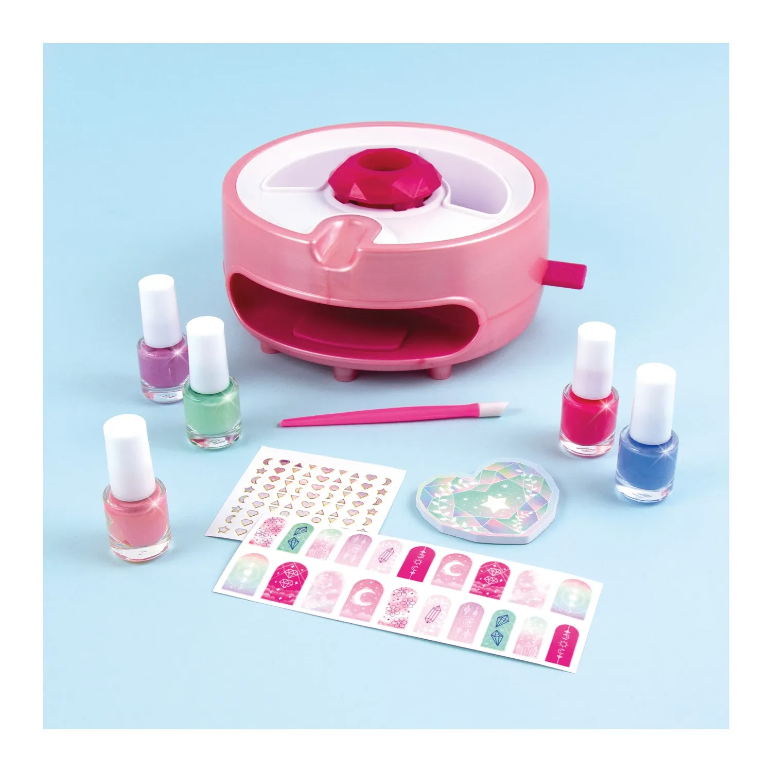 Mit dem magischen Nageltrockner lässt sich die Traummaniküre einfach und schnell kreieren. Inhalt: 1 Nageltrockner, 1 Folie mit Schaumstoff-Pads, 1 Nagelfeile, 1 Nagelhautschieber, 5 Nagellacke, 2 Bögen Nagelsticker, 1 Anleitung.63 Kunden haben diesen Artikel kürzlich gekauft.