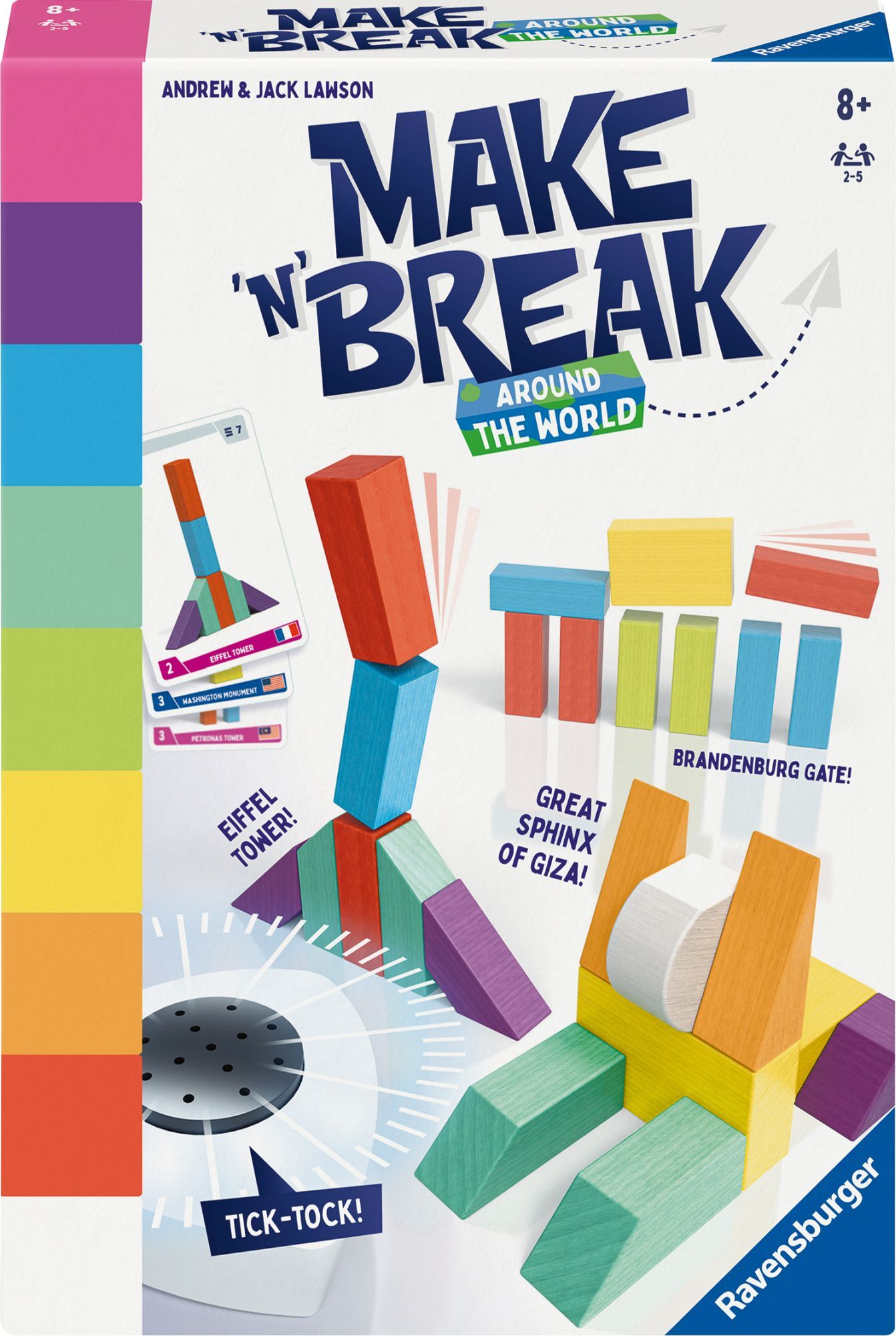 Ravensburger 22473 - Make 'n' Break - Around the World - Gesellschaftsspiel für die ganze Familie mit Bausteinen, Spie Das Bauspiel des Jahrzehnts - jetzt komplett neu! ''Make 'n' Break hat eine riesige Fanbase, die sich jetzt auf eine neue Generation des turb...