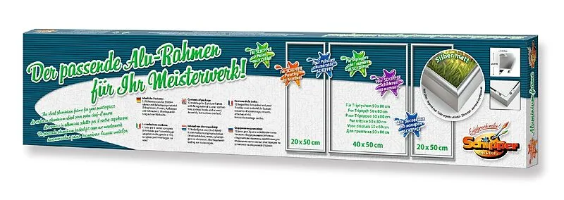 Schipper - Alurahmen Silber Triptychon 50 x 80 cm 12 silberfarbene Rahmenleisten für 3 Bilderrahmen 50 x 80 cm mit Befestigungsmaterial (Eckverbinder, Federn, Aufhänger und Schrauben), Montageanleitung. Inhalt Schipper - Alurahmen Silber Triptychon 50 x 80 cm ...