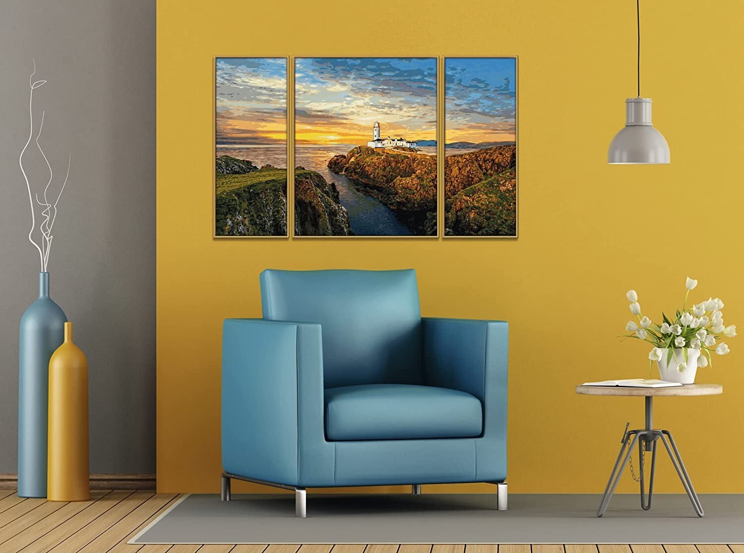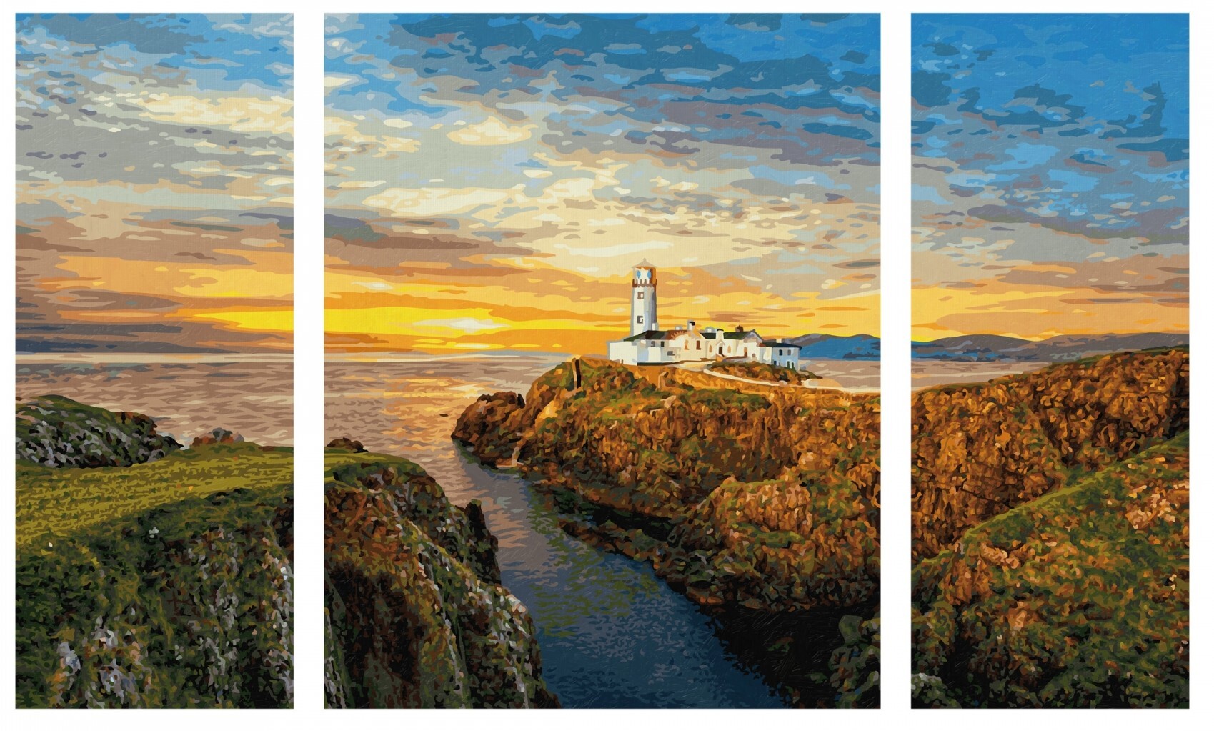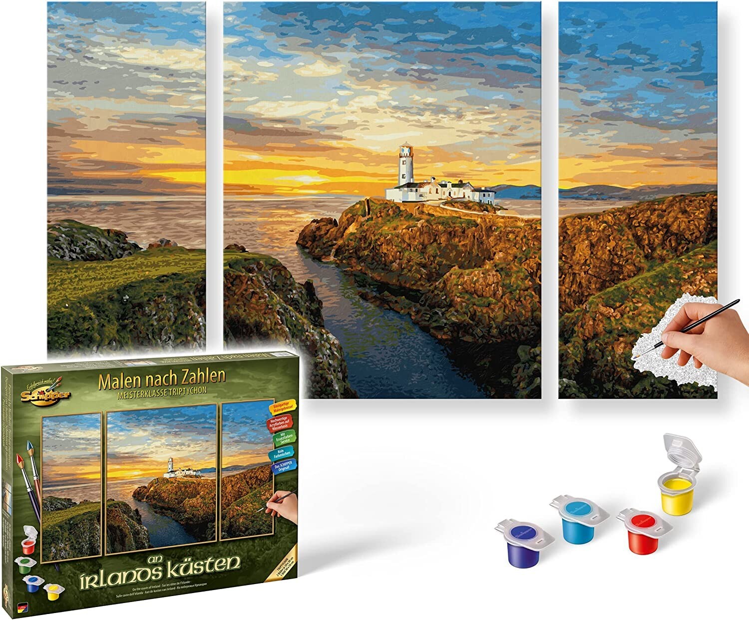 Schipper - Meisterklasse Triptychon; Malen nach Zahlen - Maltafel 50 x 80 cm mit Leinenstruktur. Malfertig vorgemischte Acrylfarben und Malpinsel in guter Qualität mit Kontrollblatt und Anleitung. Sprachen: D/GB/F/I/NL/RUS Die Küsten Irlands trotzen der stürmi...