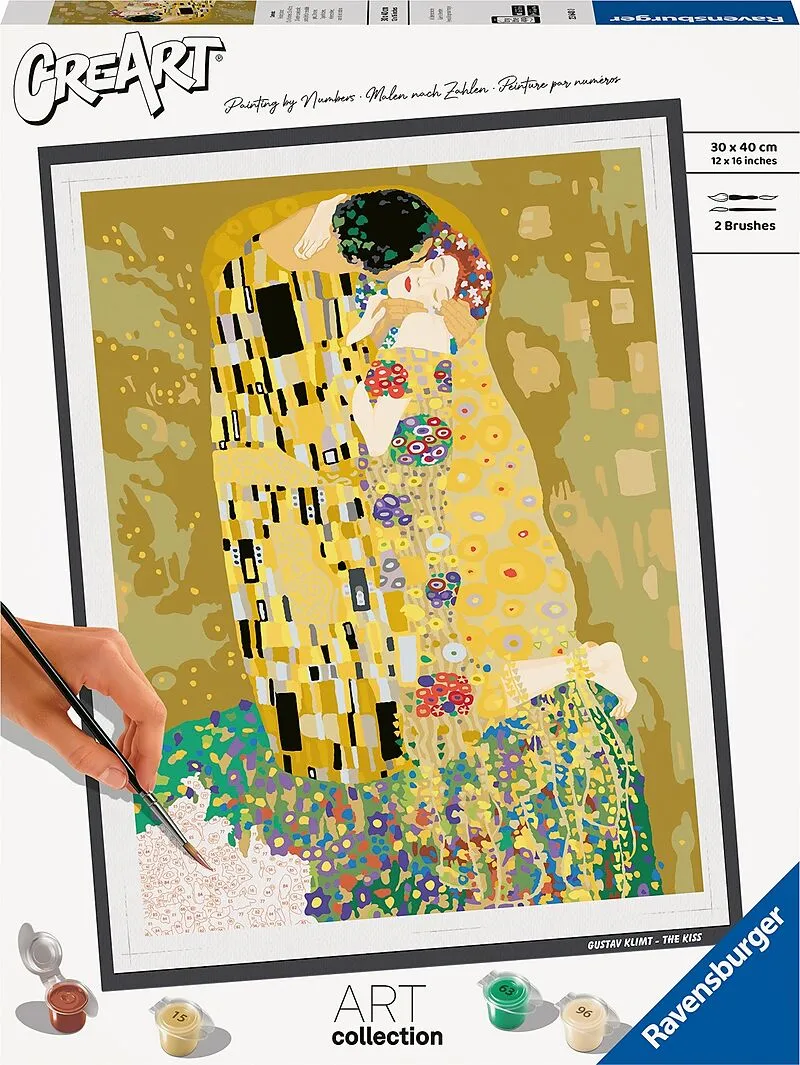 Mit CreArt - Malen nach Zahlen von Ravensburger findest du den Weg zur inneren Ruhe und Entspannung. Male weltbekannte Motive aus dem Museum: Das Meisterwerk "Der Kuss" (The Kiss, 1907-08) des österreichischen Künstlers Gustav Klimt steht wie kaum ein anderes ...