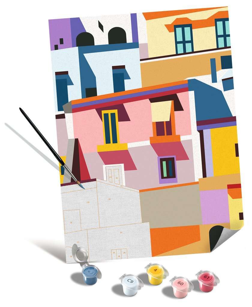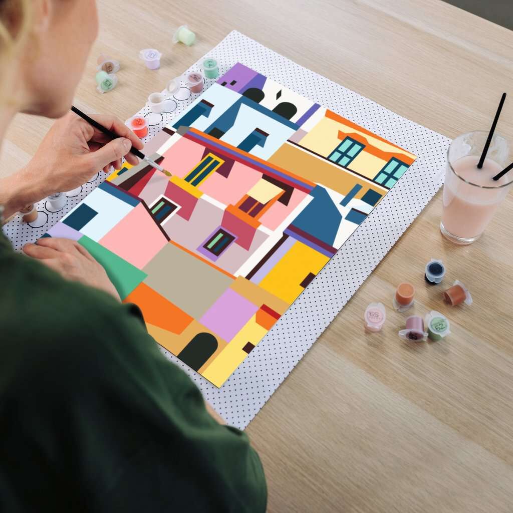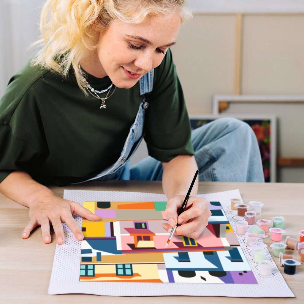 Malen nach Zahlen Farbenfrohe Häuser auf Leinwand